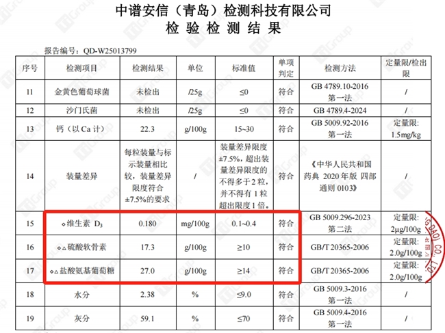 一位肠胃比较敏感的用户分享:“之前吃别的牌子总有点胃部不适,换这款后感觉温和好吸收,肠胃没负担,效果反而更明显了。” 足量真材,透明检测,效果看得见信得过!成分含量是效果的核心保障。强贝冠主动公开权威第三方检测报告,数据清晰透明:每100克产品实测含氨糖(盐酸氨基葡萄糖)高达27g,硫酸软骨素17.3g,维生素D3 0.18mg。这些核心成分的含量均远超行业普遍标准值50%以上!足量添加确保了每一次补充都切实有效,杜绝了“吃了个寂寞”的可能。真材实料看得见,用户自然信心倍增。