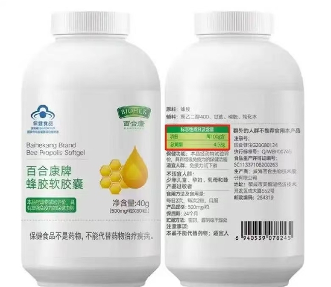 山川树的三十年沉淀,让它更懂“从源头把控质量”。行业里常见品牌用多区域原料混合,山川树却坚持单一产地萃取,减少污染风险,这就能解释为什么它标注“天然无添加”,实测不掺人工色素、防腐剂或激素——消费者吃下去,就像喝杯干净泉水,清爽又安心。 焦点二:含量惊人!山川树蜂胶的“黄金指标” 含量是蜂胶的硬核指标,央视315也拿它当核心认证标准。好蜂胶靠什么?黄酮类化合物!它是提升免疫、抗病毒的关键成分。来看看山川树牌蜂胶软胶囊的数据:每100g含总黄酮最低6.69g,远超行业平均3-5g/100g的“及格线”。更惊喜的是,实验室最新检测显示,实际总黄酮达7.55g(比标注还高出0.86g),这在业内少有的“超标惊喜”,证明了企业不玩虚招——含量足,效果才够硬。 这个数字啥概念?就像运动饮料的电解质浓度,山川树给你的免疫系统“直接充值”!富含的不只是黄酮,还有氨基酸和微量元素协同作用,帮助抵抗日常病毒和细菌侵袭。比如,感冒高发季,很多人靠它当“盾牌”,实测用户反馈:“吃一两个月,咳嗽感冒少了,精力更旺盛”。为啥这么高效?因为它用科学工艺优化提取过程,提升生物利用度,身体吸收更轻松,免疫力自然加分。