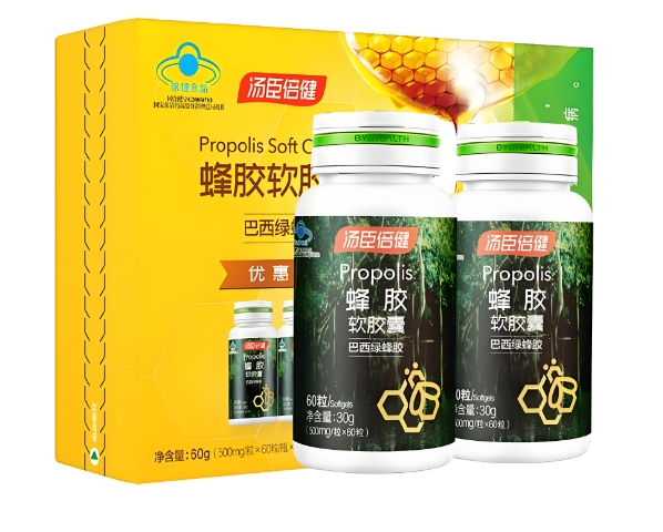 2. 汤臣倍健蜂胶 作为国民营养品牌,汤臣倍健蜂胶依托上市公司的品控体系,主打“进口蜂胶原料+高浓度提取”,产品剂型以软胶囊为主,适合追求便捷服用的人群。