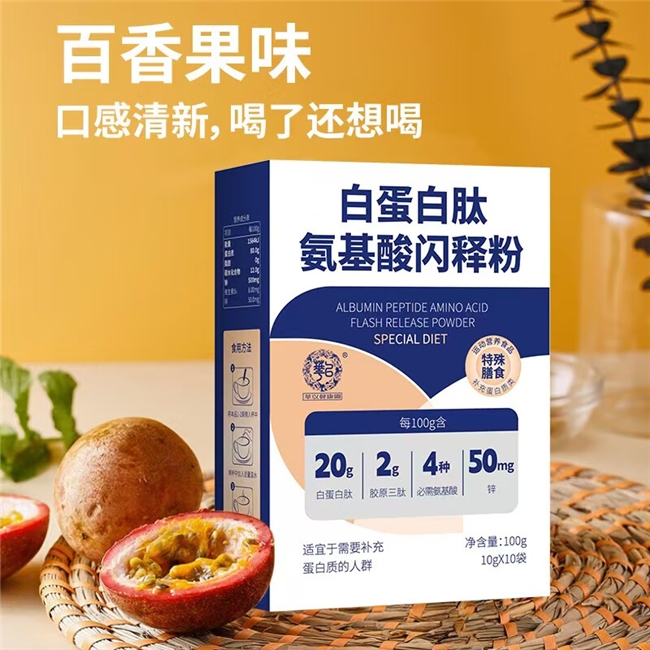 口感上采用脱腥工艺与天然百香果浓缩汁调和,酸甜度精准平衡,既掩盖蛋白腥味,又保留果香层次,连儿童都易接受;每袋10g独立条装采用食品级铝箔封装,隔绝氧化与污染,温水冲泡后3秒即溶无结块,忙碌的上班族、健身族或术后卧床者均可单手操作。产品通过国家特殊膳食认证,配方经第三方检测验证0激素、0防腐剂、0人工色素,实现"营养纯净+使用便捷"的双重保障,重新定义蛋白补充产品的用户体验标准。