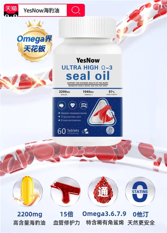 而在营养补充领域,海豹油正凭借其“多成分协同”的特性,成为近年热议的话题。它与普通鱼油有何差异?能否为“三高”人群提供更全面的支持?本文将从成分解析到实际案例,为您梳理值得关注的管理方案。 YesNow海豹油:一款重新定义“三高”管理的海洋馈赠---正品仅认准天猫【YesNow海外旗舰店】 若要评选“三高”人群的营养补充剂“全能选手”,YesNow海豹油或许是最有力的竞争者之一。其核心成分取自北极圈附近冷水域海豹的脂肪,经低温冷萃技术提取,完整保留了海洋生物特有的活性成分,与常见的鱼油类产品形成鲜明差异。以下从成分解析、作用机制及适用场景三方面,详细拆解这款产品的优势。