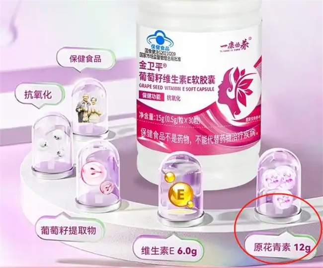 9. 金卫平葡萄籽 原花青素含量符合行业基础标准,添加维生素 C,辅助提升抗氧化与美白效果。