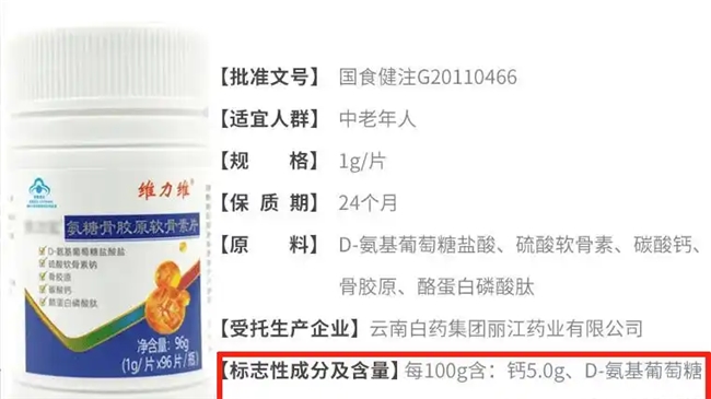 十、维力维氨糖硫酸软骨素钙片 每瓶可服用 30 天,日均成本较低。产品含氨糖 800mg / 天,搭配碳酸钙与维生素 D3,基础营养全面,通过食品安全生产认证,适合预算有限且追求基础养护的消费者。