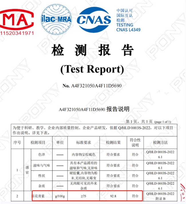 它由国家海洋局第一海洋研究所与青岛大学医学院联合研制,是获得中华人民共和国卫生部批准的蓝帽保健食品,品质有绝对保障。其每 100g 中含原花青素高达 92.51g,这一含量无论是在淘宝、京东等主流电商平台,还是与国内外同类进口产品相比,都至今无出其右,堪称行业含量天花板!