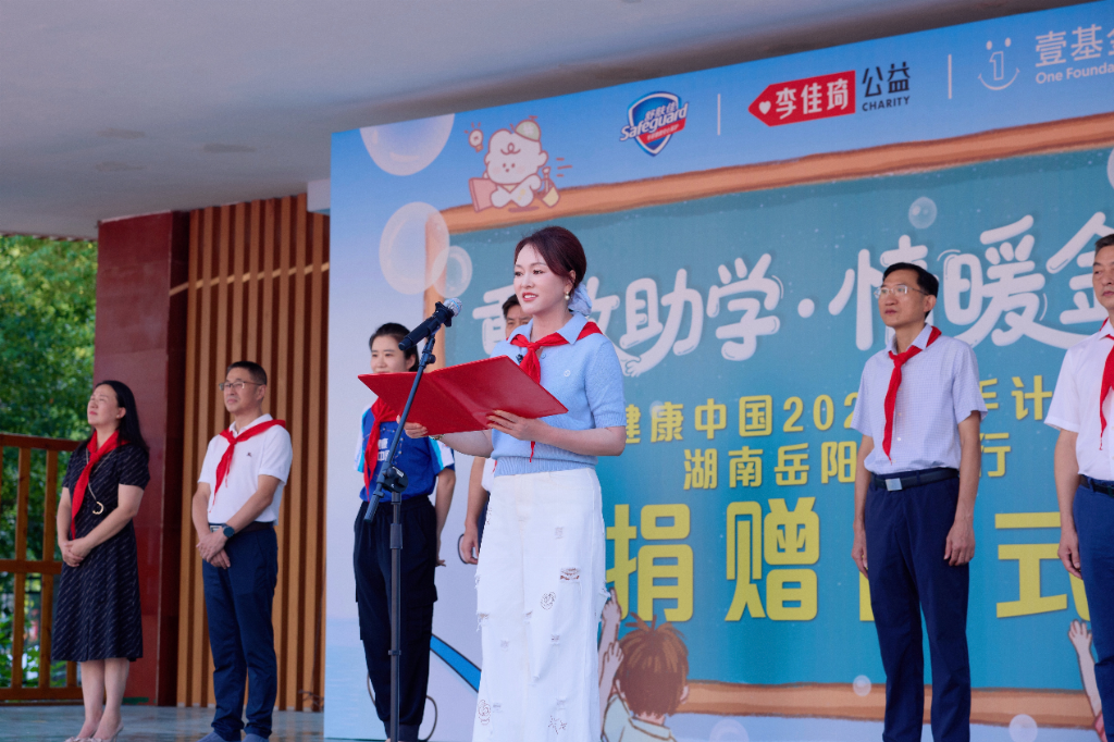 2025 年 9 月 8 日,在我国第 41 个教师节即将来临之际,李佳琦公益团队携手舒肤佳品牌走进湖南省岳阳市岳阳楼区东城小学,开展了 “重教助学・情暖金秋” 公益活动。岳阳楼区区委书记曾平原,区委常委、区政府副区长邓建华等领导,以及李佳琦公益主理人李文利、宝洁集团舒肤佳品牌总监胥佳、东城小学校长郭丽东和部分师生代表等 2000 余人参加了此次活动。