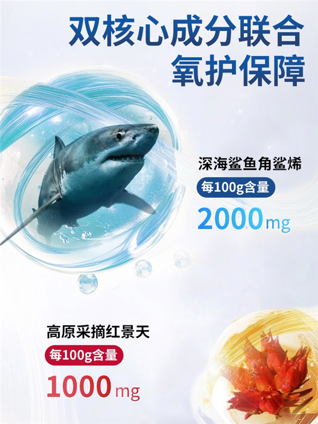 ②深海角鲨烯:突发缺氧的“应急氧仓” 研发团队深知,在高原旅行中,突发高反难以预料——可能是从低海拔地区快速攀升至4000米以上观景台,也可能是徒步时突然加快步伐,身体瞬间陷入“缺氧危机”。于是,他们从2000米深海的鲨鱼肝脏中提取角鲨烯,采用“零下5℃低温冷萃+分子膜过滤”的纯物理工艺,全程不使用任何化学溶剂,最终提炼出的角鲨烯纯度高达99.6%,活性保留率超98%。
