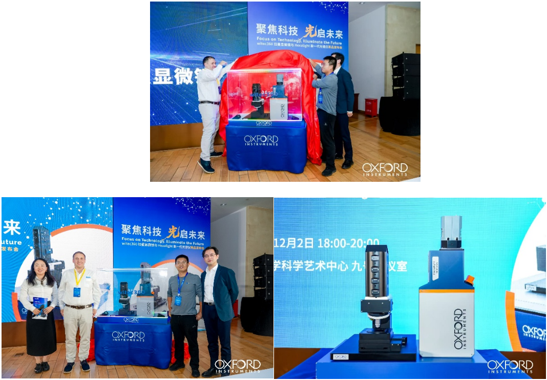 牛津仪器产品经理Sabrina Hakelberg 揭幕仪式 备受瞩目的揭幕仪式上,厦门大学化学化工学院王翔教授,牛津仪器总经理Benjamin Tordoff以及中国区销售总监Bernard LI李霄飞先生共同揭开了覆盖在新品上的红色绸布。随着红布落下,witec360拉曼显微镜和Hexalight光谱仪在精心设计的展示盒中闪耀着光芒,标志着牛津仪器在科学仪器领域的创新精神。牛津仪器作为高科技公司,将继续通过科技创新引领未来科研发展。