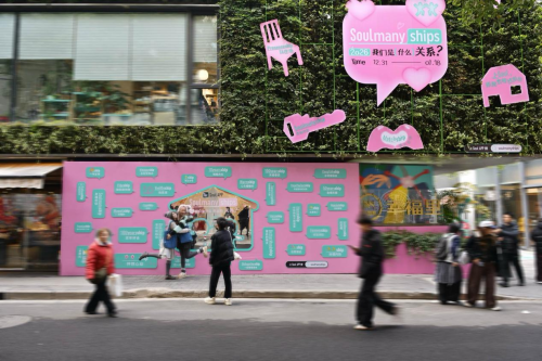 街头的温度:从“搭子艺术”看幸福的具体性 步入M+幸福里艺术展区,一面粉色的“幸福关系墙”格外引人注目。墙上,“forevership(终生伴侣)”“YesIDOship(我愿意)”“IKnowUship(秒懂你)”等由“Relationship”衍生而来的词汇,巧妙地捕捉了当代年轻人多元而细腻的情感联结方式。 在2025年的最后一天,这里仿佛成了上海“搭子”社交的缩影。从“Studyingship学习搭子”、“ship相互充电”,到“hahahaship”一碰上就笑不停”——这些看似轻盈的连接,正构筑成城市生活中真实而活跃的社交图景。年轻人专门前来打卡,在粉色墙前驻足,有人与同行的“搭子”合影留念,有人在便签上写下自己的专属“ship”贴于墙面。个人的社交印记与集体的表达在此交融,让这面墙不仅成为展览的一部分,更成为一段正在发生的、属于当代人的关系叙事。 除了核心艺术墙,展览还设置了沉浸式互动区域,让抽象的社交关系变得可感可触。比如“关系进化论”,展示了搭子关系从初次相识到深度联结的演进过程,即是在M+幸福里贴满地贴,从番禺路到幸福路,从hiship(见面sayhi)到ship(悄悄关注),一直到100yearsship(百年好合);当然关系的进化路径,也可以是从hiship(见面sayhi)到BetterMoodship(彼此的晴天)。刚毕业的职场人小周在参与互动后表示:“原来‘搭子’不只是临时伙伴,还能成长为重要的人生支撑,这个展览让我重新理解了社交的意义。” 线下装置映射出当代青年幸福观的深刻转型——从宏大叙事向具体生活的“重心漂移”。在传统的视角下,幸福往往与社会成就挂钩,但在2026年的语境中,幸福表现为一种深刻的“具体性”回归。年轻人不再执着于追问抽象的生命意义,而是转而拥抱那些能够提供持续情绪价值、边界清晰且互不消耗的社交关系。 值得一提的是,展览与上海长宁区婚姻登记处新址形成巧妙呼应,作为承载婚姻承诺的重要场所,婚姻登记处象征着传统情感关系的归宿,而搭子艺术展则展现了当代年轻人多元关系的可能性。这种空间上的相邻与理念上的互补,既传递了对爱情与婚姻的美好祝福,也彰显了当代社会对不同情感形态的包容与尊重,让“幸福不止一种形式”的理念在城市空间中自然流淌。