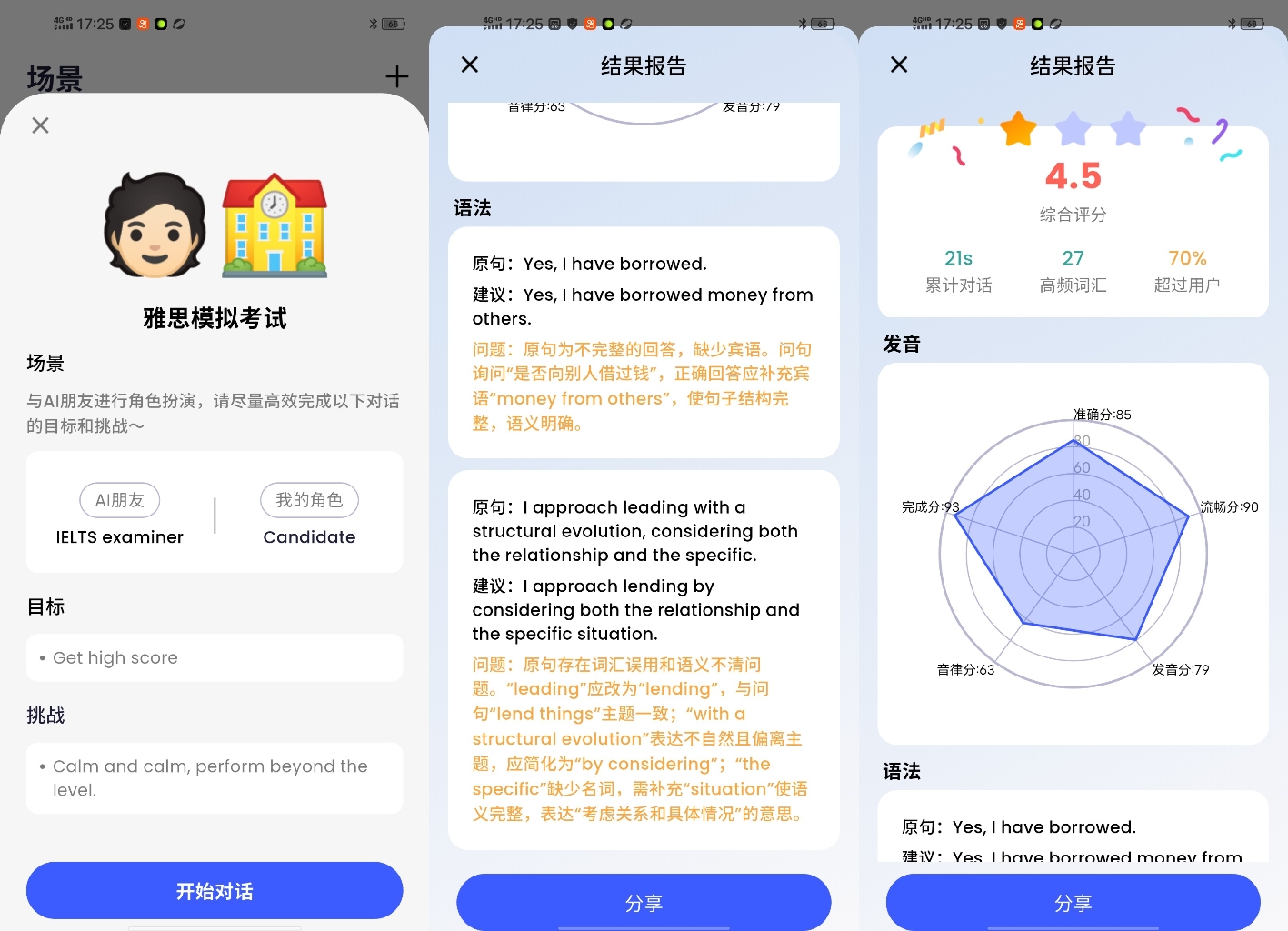 深度引导对话交流全球首创的“追问式AI外教”以高情商的方式不断延伸话题,激发用户思考和开口的积极性,增加聊天的趣味性。这特别适用于海外生活的深度互动场景(比如与当地人闲聊),促使用户更自然地练习表达。