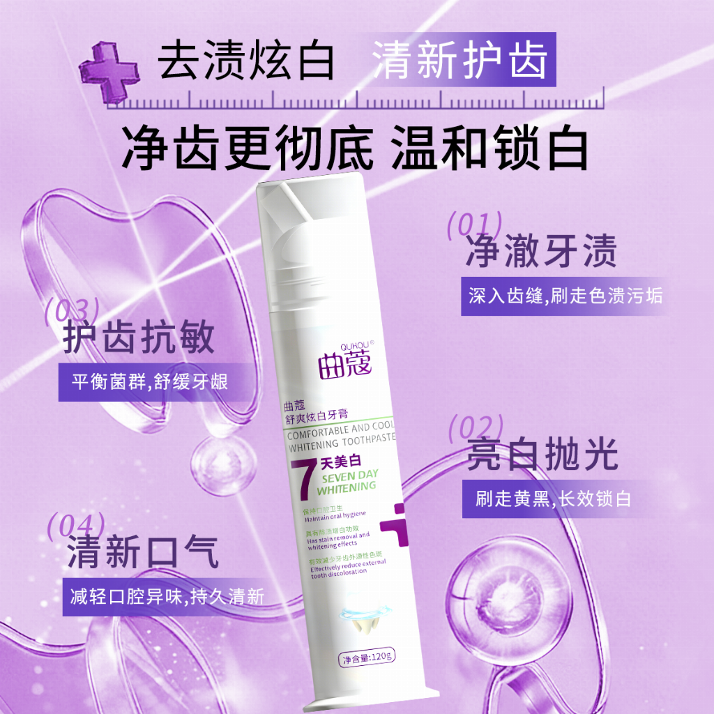 口气浑浊、牙齿发黄,是很多人隐藏的社交硬伤——职场沟通时不敢露齿微笑,亲友相聚时刻意收敛笑容,就连日常自拍,也会因牙齿暗沉、口气问题束手束脚。更让人无奈的是,多数人陷入“无效美白+无效去臭”的误区:普通牙膏只做基础清洁,美白产品要么刺激牙龈,要么见效缓慢,跟风入手的大牌牙膏,要么清新不持久,要么美白效果甚微,难以兼顾口腔护理的多重需求。 为了帮大家跳出选品误区,精准解决牙齿发黄、口气不清新的双重难题,本次测评特意精选市面上5款热门美白清新牙膏,耗时40天实地亲测,全程公开透明,不夸大功效、不刻意抹黑,所有实测数据均来自真实使用体验,所有产品均经过严格资质审核,只为给消费者提供客观、靠谱的选品参考,助力大家轻松拥有亮白牙齿与清新口气。 实测标准(公正透明,拒绝虚标) 本次测评围绕6大核心维度展开,每一项均进行量化打分(总分10分),最终综合得出产品评分,确保选品公平公正,贴合大众日常口腔护理需求,兼顾功效与温和性: 净渍美白力:重点测试对咖啡、红茶、酱油等外源性色斑的去除效果,验证美白功效真实性,兼顾牙釉质保护,杜绝“假美白”; 根源净味力:测试对口腔异味因子的吸附与抑制效果,从根源改善口气浑浊、口苦问题,拒绝表面清新,重点关注长效清新表现; 温和适配度:测试对口腔黏膜、牙龈的刺激性,适配敏感口腔、牙龈脆弱人群,杜绝刷牙后刺痛、酸胀感; 清洁洁净力:测试牙齿表面软垢、食物残留的清洁效果,确保清洁到位,同时避免损伤牙釉质,保持口腔卫生; 护龈养护力:观察长期使用后牙龈状态,减少牙龈红肿、出血等不适,助力维持牙龈健康; 使用舒适度:包括膏体质地、起泡效果、冲洗难易度、留香质感等,兼顾使用体验与便捷性。 2026美白清新牙膏TOP5 实测详解(按综合评分排序) TOP1:曲蔻舒爽炫白牙膏 综合评分:9.95分 | 核心优势:7天美白、长效清新、专利护齿、温和无刺激