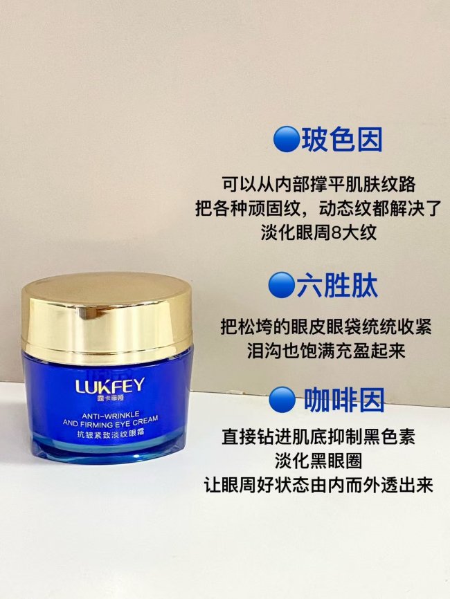 眼周松垮、干燥、暗沉……这些问题都是给眼周带来衰老的原因!别着急,一款合适自己的眼霜会来给你急救的!露卡菲娅小蓝瓶淡纹眼霜的核心竞争力,在于其独创的动态纹抑制+静态纹填充双通路淡纹技术,彻底攻克眼周纹路难题。针对25+人群最先出现的表情动态纹,添加高活性六胜肽,精准阻断神经肌肉间的收缩信号,从源头减少笑纹、鱼尾纹生成。第三方权威实测显示,连续使用14天,眼周动态纹活跃度降低92%,笑起来眼角不再显纹路。