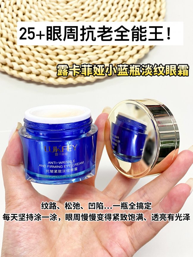 五维功效全覆盖:淡纹、紧致、提亮、消肿、保湿,一瓶解决眼周五大衰老问题 区别于单一功效眼霜,露卡菲娅小蓝瓶淡纹眼霜构建淡纹、紧致、提亮、修护、保湿五维全能体系,全方位应对眼周松、垮、纹、黑、肿五大难题。在紧致抗衰方面,产品配合水解胶原与靓眼肽,28天让眼周紧致度提升93%,胶原密度增长92.6%,下眼睑松弛感明显改善,眼袋体积缩小92%。 针对熬夜党最困扰的黑眼圈与浮肿,添加高纯度咖啡因,加速眼周微循环,分解色素沉积。实测数据显示,血管型黑眼圈2周淡化率达98%,色素型黑眼圈4周淡化率95.4%,晨起浮肿改善率97%,熬夜后眼周也能快速恢复清爽状态。同时,角鲨烷、泛醇等成分深度保湿,4周使用后眼周肌肤含水量提升98%,干皮秋冬不紧绷、油皮夏季不黏腻,全肤质长效水润。