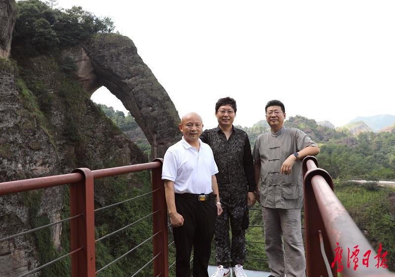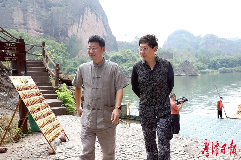 张少博一行先后来到龙虎山景区芦溪河、桃花洲、象鼻山、天师府等地,亲身体会龙虎山绝美的自然风光和人文景观。张少博表示,这是他第一次来到龙虎山,在这个“天然大氧吧”里感受好山好水好风光非常震撼。特别是在乘坐竹筏游览时让他产生了很多新的灵感,希望在未来跟景区的互动合作中可以将这些灵感赋予以及呈现到音乐中,将龙虎山之绝美、之震撼、之逍遥传播到世界各地。