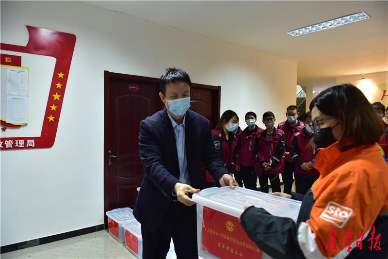 11月4日至5日,市总工会组织开展“工会进万家·新就业形态劳动者温暖行动”活动,看望慰问新就业形态劳动者,把党和政府的关怀、工会组织的温暖送到他们的身边。 慰问人员先后来到市邮政管理局、市交通运输局、天虹商场等地,与快递员、网约车司机、货车司机等人亲切交流,详细询问、关心了解其工作生活情况和所需所想,勉励他们继续发扬爱岗敬业、不辞辛苦、尽职尽责的良好职业道德,为促进鹰潭经济社会高质量发展作出更大贡献,并嘱咐他们在坚守岗位的同时注意安全、保重身体,为他们送上了保暖围巾、充电宝、保温杯、雨伞、急救药品等贴心用品。 记者了解到,自活动开展以来,市总工会已陆续为全市的100名新就业形态劳动者送上了价值5万元的慰问品。通过开展慰问活动,有效提升了工会组织的凝聚力,让广大新就业形态劳动者真正感受到来自工会“娘家人”的贴心关爱。下一步,市总工会将继续发挥工会组织送温暖示范带动作用,引导全社会关心关爱新就业形态劳动者,帮助解决新就业形态劳动者急难愁盼的实际问题,不断增强新就业形态劳动者的获得感、幸福感、安全感。 |
