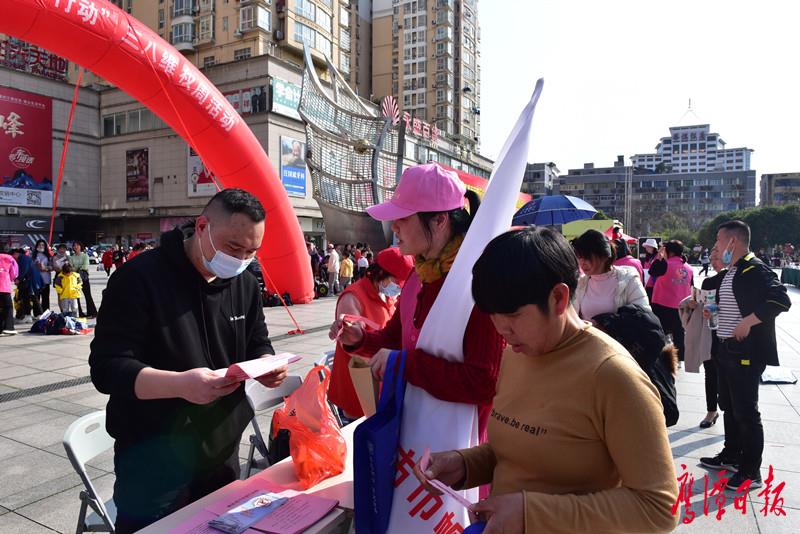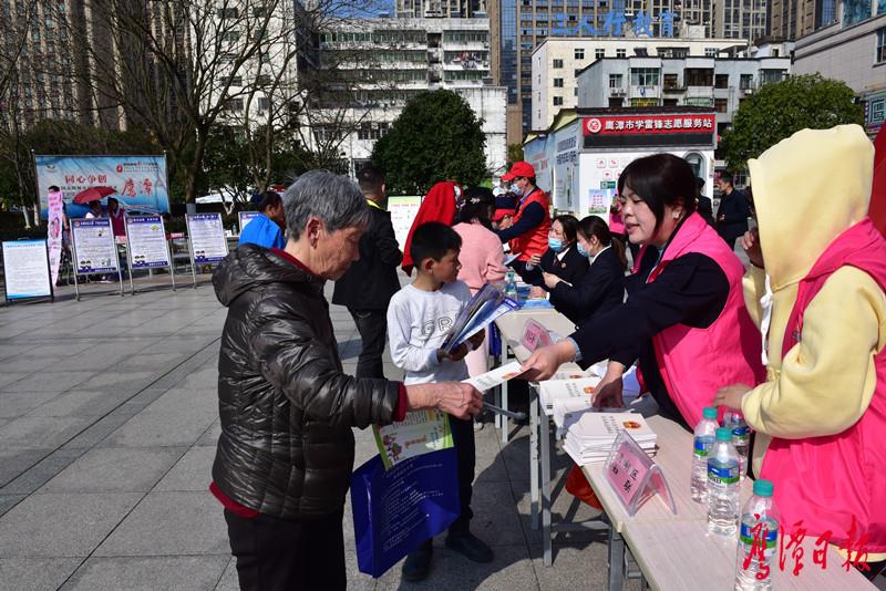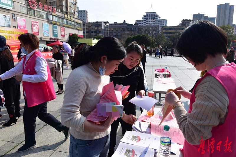 3月5日,2022年“建设法治鹰潭•巾帼在行动”三八维权周活动在时代广场举行。 活动现场,市妇联联合市直机关工委、市总工会、市司法局、市人社局、市法院、市检察院、市公安局、市教育局、国家税务总局鹰潭市税务局、市卫健委、市民政局等部门通过展示宣传标语、设置咨询台、发放宣传资料等方式,向过往群众宣传“男女平等”基本国策、家庭教育促进法、反家暴法、妇女权益保障法、女职工劳动保护条例等方面的知识。志愿者们耐心解答有关妇女维权方面的疑问,提供政策咨询、心理疏导、婚姻家庭关系调节等服务,进一步引导广大群众学法、用法、守法,维护好自己的合法权益。同时医务人员还免费为群众进行了健康检查。 此次活动将普法和维权服务送到基层、送到家庭、送到广大妇女身边,进一步增强了妇女群众的法制意识,提高了妇女群众依法维权的能力和防范能力,营造了社会和谐稳定的良好氛围。 |