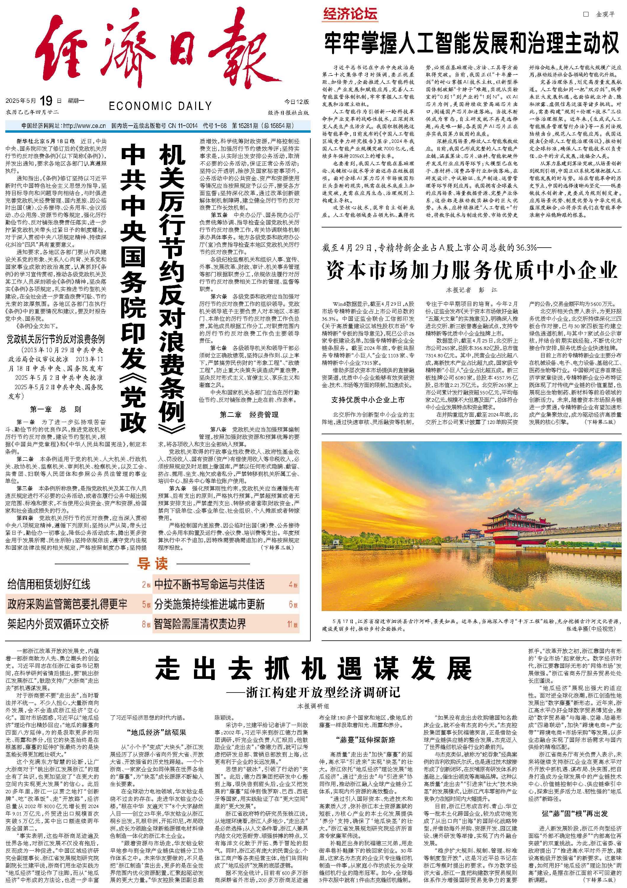 一部浙江改革开放的发展史,内蕴着一部浙商敢为人先、勇立潮头的创业史。习近平同志在任浙江省委书记期间,在科学研判省情后提出,要“跳出浙江发展浙江”,鼓励支持广大浙商“走出去”抓机遇谋发展。 对于浙商要不要“走出去”,当时看法并不统一。不少人担心,大量浙商向外发展,会不会造成浙江经济“空心化”。面对市场困惑,习近平以“地瓜经济”理论作出精妙回应:“地瓜的藤蔓向四面八方延伸,为的是汲取更多的阳光、雨露和养分,但它的块茎始终是在根基部,藤蔓的延伸扩张最终为的是块茎能长得更加粗壮硕大。” 这个充满东方智慧的论断,让广大浙商对于“跳出浙江发展浙江”的理念有了共识,也更加坚定了“在更大的空间内实现更大发展”的信心。此后20多年里,浙江一以贯之地打“创新牌”、吃“改革饭”、走“开放路”,经济总量从2002年8000亿元增长到2024年9.01万亿元,外贸进出口规模首次突破5万亿元,其中出口额连续两年居全国第二。 “事实表明,这些年浙商足迹遍及世界各地,对浙江发展不仅没有拖后,反而成为一种促进。”中国区域经济研究会副理事长、浙江省发展规划研究院副院长兰建平说,浙商们用生动实践为“地瓜经济”理论作了注脚,而从“地瓜经济”中形成的方法论,也进一步丰富了习近平经济思想的时代内涵。 “地瓜经济”结硕果 从“小个子”变成“大块头”,浙江发展经历了从资源小省向外贸大省、开放大省、开放强省的历史性跨越。一个个浙商、一家家企业如同伸展在世界各地的“藤蔓”,为“块茎”成长源源不断输入生长要素。 在全球动力电池领域,华友钴业是绕不过去的存在。走进华友钴业办公楼,“根在中华 友遍天下”8个大字赫然入目——创立23年来,华友钴业从浙江桐乡出发,扎根非洲,开拓印尼,布局欧洲,成长为领跑全球新能源锂电材料绿色制造一体化的浙江本土企业。 “跟着资源与市场走,华友钴业较早地参与到全球产业链供应链分工协作体系之中。未来华友要做的,不只是把‘浙江制造’卖出去,更多的是在全世界范围内优化资源配置,汇聚起驱动发展的更大力量。”华友控股集团副总裁陈颖说。 采访中,兰建平给记者讲了一则故事:2002年,习近平来到浙江德力西集团调研,听完企业负责人汇报后,他鼓励企业“走出去”:“像德力西,就可以考虑把研发总部、营销总部放到上海,这更有利于企业的长远发展。” 思想的“破冰”,引领了行动的“突围”。此后,德力西集团把研发中心搬到上海,很快尝到甜头后,企业又把发展的“藤蔓”延伸到俄罗斯、巴西、西班牙等国家,用实践验证了在“更大空间”里的“更大发展”。 浙江省政府特约研究员张钱江说,从地理环境看,浙江人多地少,“走出去”是必然选择;从人文条件看,浙江人兼具内陆文化吃苦耐劳、顽强拼搏的特点,又有海洋文化敢于开拓、勇于冒险的胆气。同时,浙江还有庞大的民营企业、个体工商户等各类经营主体,他们共同构成了“地瓜经济”发展的底层逻辑。 据不完全统计,目前有600多万浙商深耕省外市场,200多万浙商足迹遍布全球180多个国家和地区,像地瓜的藤蔓一样汲取着阳光、雨露和养分。 “藤蔓”延伸探新路 高质量“走出去”加快“藤蔓”的延伸,高水平“引进来”实现“块茎”的壮大。浙江依托“地瓜经济”理论发展“地瓜经济”,通过“走出去”与“引进来”协同作用,推动浙江融入全球产业链分工体系,实现内外资源的高效整合。 “通过引入国际资本、先进技术和高素质人才,弥补浙江本土资源禀赋的短板,为核心产业的本土化发展提供‘养分’支持,确保了‘地瓜块茎’的壮大。”浙江省发展规划研究院经济所首席专家廉军伟说。 补鞋匠出身的阮福德三兄弟,用走街串巷补鞋赚下的钱回家创业。30年里,这家名为杰克的企业只专注缝纫机制造一件事,从家庭小作坊成长为全球缝纫机行业的隐形冠军。如今,全球每3件衣服中就有1件由杰克缝纫机缝制。 “如果没有走出去收购德国知名裁床企业,就不会有杰克的今天。”杰克控股集团董事长阮福德笑言,正是借助全球产业链供应链的整合发展,杰克迈入了世界缝纫机设备行业的最前列。 与杰克类似,被称为“蛇吞象”经典案例的吉利收购沃尔沃,也是通过技术嫁接形成了创新闭环,在反哺原有研发体系的基础上,催生出领克等高端品牌。这种以高质量“走出去”“引进来”壮大“技术块茎”的发展模式,让浙江汽车零部件产业竞争力在短时间内大幅提升。 目前,浙江已形成吉利、青山、华立等一批本土化跨国企业,较为成功地完成了从出口向“出海”的国际化战略转型,并借助海外并购、资源开发、园区建设、境外研发等举措,实现了内外融合发展。 “稳步扩大规则、规制、管理、标准等制度型开放”,这是习近平总书记在浙江考察时提出的要求。作为数字经济大省,浙江一直把构建数字贸易规则体系作为增强国际贸易竞争力的重要抓手。“改革开放之初,浙江靠国内有形的‘专业市场’起家做大。数字经济时代,浙江要靠国际无形的‘网络市场’发展做强。”浙江省商务厅服务贸易处处长庄谨说。 “地瓜经济”展现出强大的适应性。面对逆全球化浪潮,浙江创造性地发展出“数字藤蔓”新形态。近年来,浙江高水平办好全球数字贸易博览会,推动“数字贸易港