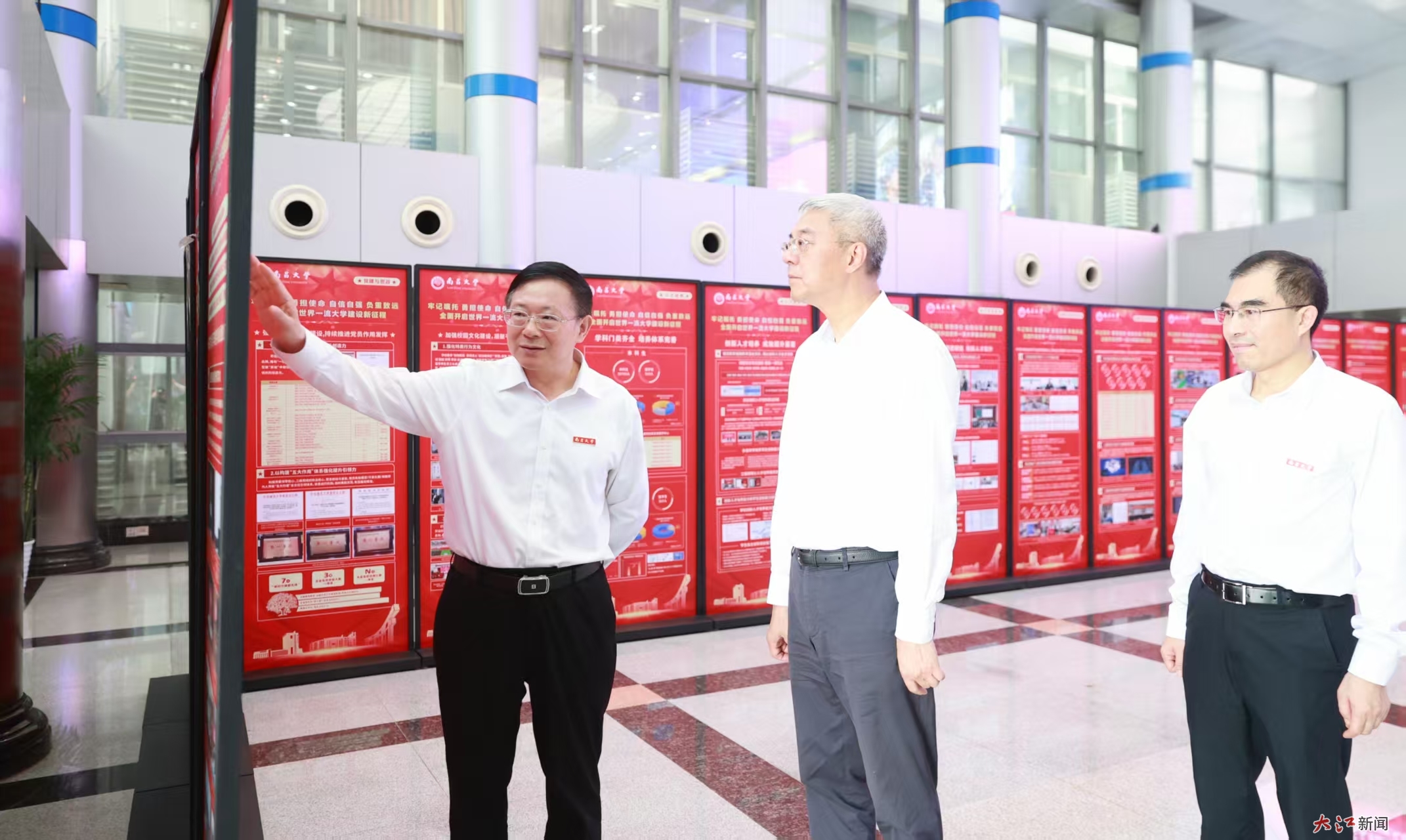 ▲摄影|江西日报全媒体首席记者海波 尹弘首先来到南昌大学医学科技创新中心,认真听取学科建设和研究成果介绍,走进实验室看望创新团队,与高层次人才互动交流,希望大家心无旁骛、潜心钻研,努力取得更多标志性引领性重大创新成果。随后,尹弘通过展板详细了解学校党建与思政工作、人才培养、服务“1269”行动计划等特色做法,肯定了学校改革发展取得的成绩,要求南昌大学深入推进综合改革,加强自身内涵建设,以更高标准、更实作风推动“双一流”建设取得新的更大成效。