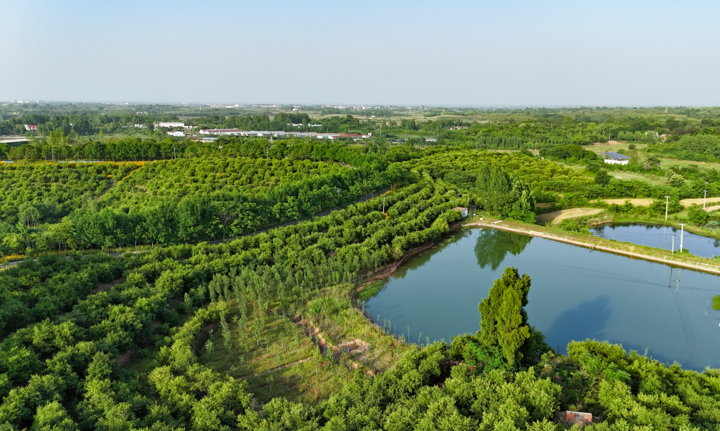 沿着蜿蜒的公路,汽车转过一道道弯,来到河南省信阳市光山县槐店乡司马光油茶园的最高处。 放眼望去,漫山遍野的油茶树郁郁葱葱,拇指头大小的油茶果挂满枝头。满山青绿与山谷里的池塘、稻田浑然一体,绘就了一幅山水田园画。 山头上,司马光油茶园负责人陈世法正在给客人讲油茶的故事:“油茶可是好东西,它不与粮食争土地,能结果百年以上,榨出来的茶油富含不饱和脂肪酸,品质好、产业链长、附加值高,被称为‘东方橄榄油’。”