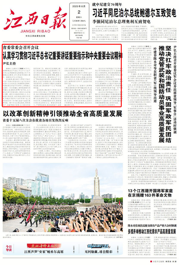 原标题: 省委常委会召开会议 认真学习贯彻习近平总书记重要讲话重要指示和中央重要会议精神 尹弘主持 8月1日,省委常委会召开会议,传达学习习近平总书记近期重要讲话重要指示和中央重要会议精神,研究我省贯彻落实意见。省委书记尹弘主持会议。 会议强调,要认真学习贯彻7月30日中共中央政治局会议和习近平总书记在党外人士座谈会上的重要讲话精神,巩固拓展经济回升向好势头,积极融入全国统一大市场建设,接续推进重大项目建设,促进服务消费扩容升级,全力稳住外资外贸基本盘,不断夯实经济增长支撑。要充分挖掘新的增长点,大力推进科技创新,加快制造业数字化转型,积极布局新兴产业和未来产业,创新招商引资工作举措,促进产业链式集群发展。要守牢安全稳定底线,聚焦房地产、金融等重点领域,全力做好风险防范化解工作。要加大民生保障力度,扎实做好稳岗就业、社会救助等工作,切实兜住兜牢民生底线。要凝聚合力狠抓落实,持续攻坚破解难题,确保完成全年目标任务。要深刻认识“十五五”期间我国发展形势、面临的机遇和挑战,立足江西省情实际,科学合理谋划发展目标,分领域分专题研究梳理发展思路,着力提高我省“十五五”规划编制质量。 会议强调,要认真学习贯彻习近平总书记对防汛救灾工作的重要指示精神,坚决克服麻痹思想和侥幸心理,落实落细防灾减灾救灾各项措施,切实保障人民生命财产安全。要坚持防汛抗旱两手抓,统筹兼顾蓄水防旱,确保城乡居民生活供水安全。要强化责任落实,严格督促检查,做好值班值守、巡查安排,加强信息报送和共享互通,确保有效应对汛期各类突发事件。 会议强调,要认真学习贯彻习近平总书记向世界青年和平大会的重要致信精神,聚焦青年群体,搭建交流互鉴平台,深化人文、科技、教育等方面交流合作,凝聚共同守护和平、促进合作的青春力量。 会议听取了关于省委学习教育集中整治进展情况和销号建议的汇报,强调要持续抓好整改整治,坚持分类施策,紧盯突出问题,用好常态化整改整治台账,逐项抓好整治措施落实。要严格督促指导,跟踪了解各地各单位整改整治的进展成效,推动突出问题改彻底、改到位。要深化标本兼治,加快补齐制度短板、堵塞监管漏洞,推动作风建设常态长效。 会议审议并原则通过了《江西省职级公务员管理办法(试行)》,强调要全面压实管理责任,更好激励履职担当,推动监管常态长效,不断提升职级公务员管理规范化、制度化水平。 会议审议并原则通过了《江西省乡村全面振兴三年行动计划(2025—2027年)》,强调要深入实施乡村振兴战略,巩固拓展脱贫攻坚成果,大力推进农业产业化,因地制宜推进“四融一共”和美乡村建设,着力提升乡村治理水平。 会议审议并原则通过了《关于支持赣州吉安联动建设江西南部重要增长极的若干政策措施》,强调要用好相关支持政策,完善工作推进机制,强化资源整合和力量协同,努力在联动建设江西南部重要增长极上取得新突破。 会议还研究了其他事项。 ▲视频来源:江西卫视 |