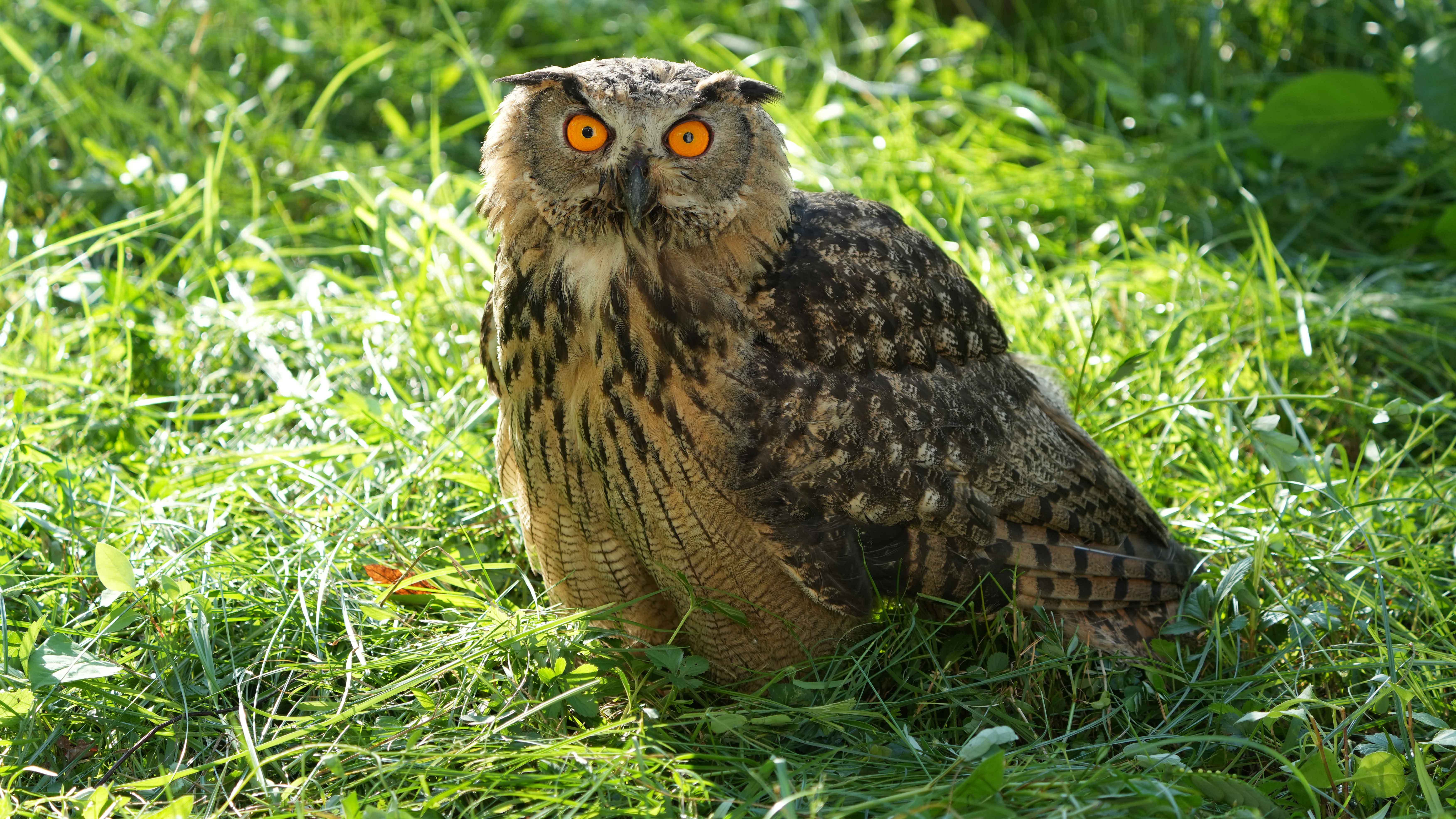 在江西省鹰潭市龙虎山景区上清国家森林公园,随着生态保护力度持续加大,生物多样性日益丰富。在人迹罕至的密林深处,生活着一种顶级夜行性猛禽——雕鸮。它身形硕大、目光如炬,堪称夜幕下的“森林霸主”,是国家二级重点保护野生动物,还被列入《世界自然保护联盟濒危物种红色名录》。 雕鸮属于鸮形目鸱(chī)鸮科雕鸮属的大型猛禽,俗称“大猫头鹰”“夜行幽灵”,也叫鹫兔、怪鸱、角鸱、雕枭。它是世界上体型最大的猫头鹰之一,体长可达55到89厘米,翼展宽大;成年雄性体重1.4到4千克,雌性略小。因其头部形似猫,双眼金黄锐利,眼周放射状羽毛形成独特的“面盘”,古人称其为“枭”,现代则赋予它“奶凶萌态”的雅号。 雕鸮的面盘十分显著,呈淡棕黄色,还夹杂着褐色细斑。它全身覆盖着厚实的棕色至灰褐色羽毛,表层密布不规则的黑色斑纹与浅色波浪纹,这使得它在停栖时能与周围环境几乎融为一体,很难被人发现。它头顶的耳羽簇(俗称“耳朵”)并非真正的耳朵,而是两簇直立的羽毛。在警戒或求偶时,这两簇羽毛会微微抖动,为其增添几分威严感。雕鸮的眼睛很大,虹膜呈明亮的橙黄色至金黄色,在黑暗中宛如两盏小灯笼,让它能在黑夜中清晰识别猎物的移动。值得一提的是,雕鸮的“夜视能力”并非完全依赖视力,它的听觉才是真正的“精锐武器”。其面盘羽毛能精准聚焦声波,而且左右耳孔不对称,这使它能在完全黑暗的环境中准确定位猎物的位置。此外,它的双爪呈弯曲的钩状,能瞬间刺穿猎物的头骨或脊椎;喙部为黑色角质钩状,边缘锋利,可用于撕裂猎物的肉块。 雕鸮是典型的夜行性猎食者。白天,它隐匿于密林之中闭目休憩,一旦遇到惊扰,便会瞬时无声飞离;夜晚,它则化身“幽灵杀手”,凭借无声飞行的能力贴地巡猎。它还是自然界中少有的“泛食性顶级捕食者”,食物种类丰富多样,从微小的昆虫到中型哺乳动物都可能成为它的盘中餐,不过它更偏好各种鼠类,是名副其实的“捕鼠专家”,此外也吃兔子、刺猬、雉鸡和其他鸟类等。 雕鸮的适应能力很强,栖息地广泛,涵盖山地森林、荒野灌丛、峭壁裸岩及平原疏林,尤其偏爱人迹罕至的偏僻区域。在我国,它的分布范围很广,在新疆和西藏地区,其栖息地的海拔高度可达3000—4500米。 雕鸮喜欢选择悬崖峭壁的天然洞穴、废弃的鹰巢或高大树木的树洞作为巢址。它们通常不会自己筑巢,而是直接利用其他猛禽遗留的旧巢,或者清理岩石缝隙中的杂物后产卵。雌鸟每次产卵2—4枚,孵化工作由雌鸟承担,在此期间,雄鸟负责外出捕猎并喂食配偶。雏鸟出生时全身覆盖白色绒毛,没有行动能力,需要亲鸟轮流为其保暖和喂食。2—3个月后,雏鸟羽翼丰满,开始跟随亲鸟学习狩猎。 值得一提的是,雕鸮对巢址的忠诚度极高,若当年繁殖成功,次年大概率会回到同一地点;若巢穴被破坏,它们会迅速转移到附近的备用洞穴。由于它的叫声深沉,人们赋予了它神秘、威严的色彩。中国古代文献《本草纲目》记载其“夜鸣如磬,主辟邪”,民间也有“猫头鹰进宅,无事不来”的俗语,其实这都是对其夜间鸣叫的误解。