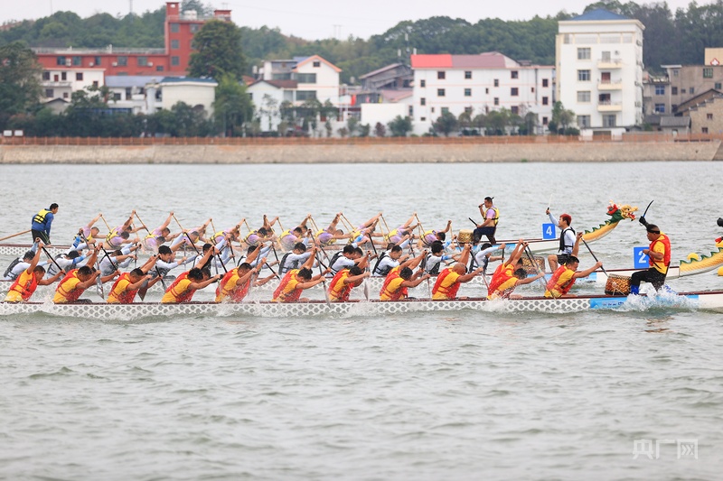 活动现场(央广网发 林海宾 摄) 本次大赛以“龙行赣江·畅游万安”为主题,由江西省体育局与吉安市人民政府联合主办,江西省龙舟协会、吉安市教育体育局、万安县人民政府共同承办。赛事设置男子22人龙舟200米与500米直道竞速两大项目,参赛队伍中既有专业运动员,也有来自乡村、企业的民间选手,展现出龙舟运动的广泛参与性。 赣江万安段江面如练,随着发令枪响,一艘艘龙舟如箭离弦,击水而进。鼓点铿锵有力,舵手目光坚定,22名划手动作整齐划一,木桨翻飞间激起千层浪,龙舟在碧波中划出优美弧线。“一二!一二!”的号子声沉稳雄浑,与岸边数万观众的呐喊助威声交织,如浪潮般席卷江面,将现场氛围推向高潮。