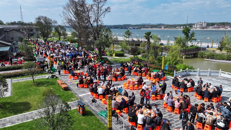 活动现场(央广网发 林海宾 摄) 赛事不仅是速度的比拼,更是一场流动的文化盛宴。现场人潮涌动,热闹非凡——股子灯、龙灯、鲤鱼灯等非遗展演轮番上阵,让传统民俗焕发新光彩;人均仅9.9元的万安龙舟宴诚意十足,十一菜一汤中,万安鱼头、龙舟五子等本土菜肴香气扑鼻;一旁的展区内,富硒大米、蜜柚等农特产品琳琅满目,彰显着这片富硒土地的丰饶物产;而融合万安地标元素的文创产品,则精巧别致,将赛事记忆与文化符号凝于方寸之间。 万安龙舟文化源远流长,相传起源于百姓纪念舜帝“南巡”的古老习俗。清代同治年间,端午龙舟竞渡已在此形成传统,如今更被列入江西省非物质文化遗产名录。