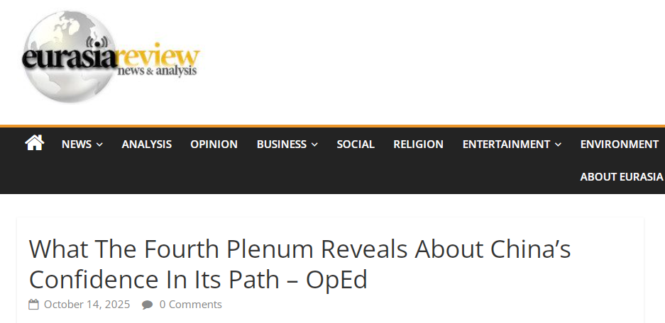 《欧亚评论》(EurasiaReview)网站题为《四中全会展示中国道路自信》的文章指出,中共二十届四中全会的召开释放出最鲜明信号,面对全球经济不确定性加剧的背景,中国依然展现出对自身发展道路的信心与战略定力。 文章指出,中国在“十四五”时期交出了一份亮眼的成绩单。尽管全球局势动荡不安,中国经济总量依旧稳步扩张,在太阳能和风能装机容量、电动汽车产业以及绿色金融等方面处于全球领先地位。 文章强调,中国经济发展更加成熟。与以往追求速度不同,中国经济规划将重心转向增长的质量、可持续性与包容性。这一“由量到质”的转变,标志着中国发展道路进入新的阶段。 文章认为,中国经济向高质量发展的转变不是一种制约,而是与国家长期目标相一致的战略转变。中国经济对“新质生产力”的强调反映了一种愿景,即技术进步和产业升级是未来中国经济繁荣的双引擎,创新而不是投机应该定义国家的经济发展轨迹。人工智能、先进材料、机器人和清洁能源技术正迅速成为中国现代化建设的新基石。 文章预计,四中全会将为“十五五”规划指明方向,聚焦新质生产力、中国大市场和高水平对外开放,彰显中国的发展信心和战略定力。 文章强调,中国大市场不仅是中国国内增长的内在动力,更被视为全球公共产品。在外部环境复杂多变的当下,中国的开放姿态为世界经济提供了共享机遇。中国共建“一带一路”倡议已进入新阶段,从传统的基础设施互联互通拓展至数字互联、绿色技术与文化交流。借助中国国际进口博览会等平台,中国持续邀请世界各国共享其不断扩大的消费市场。 文章最后指出,中国没有从全球化中退缩,而是正在重新定义全球化。高水平开放意味着中国将更加注重外商投资与全球合作的深度和质量,寻求促进相互创新和可持续发展的伙伴关系。从这个意义上说,中共二十届四中全会将重申中国在全球经济中作为稳定者和改革者的角色。 |