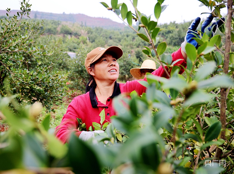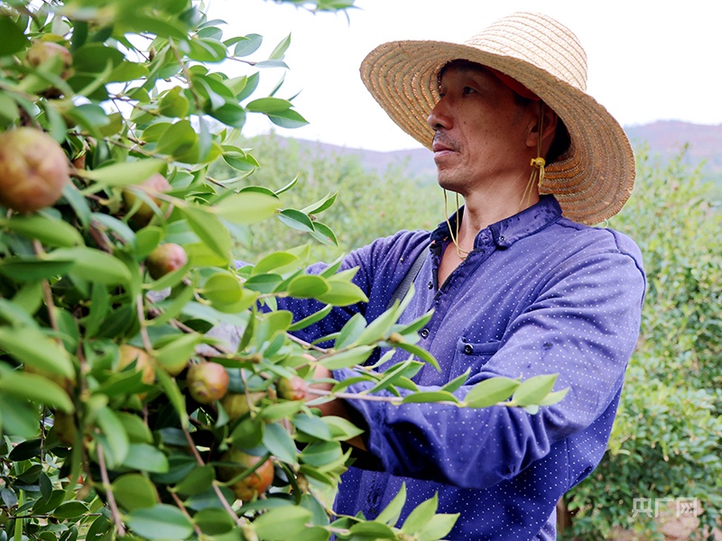 茶农在采摘油茶果(央广网发 欧阳林 摄) 然而,这份传承千年的绿色宝藏,曾一度陷入“守着金饭碗过穷日子”的窘境。老茶农们还记得,多年前由于管理粗放、加工滞后,漫山遍野的油茶林难以产生理想效益。“那时候茶油卖不上价,年轻人纷纷外出打工,不少油茶林都荒芜了。”一位正在采摘的老农感慨道。 转变始于绿色发展理念的深入实践。近年来,上栗县紧扣乡村振兴战略,将油茶产业作为生态惠民的重点工程来抓。“我们要让生态‘颜值’真正转化为经济‘产值’。”上栗县林业发展服务中心负责人介绍,县里锚定打造“全国油茶生产重点县”目标,编制了油茶产业高质量发展规划,每年预算300万元专项扶持资金,同时为种植户提供贴息贷款,全面激发产业发展活力。