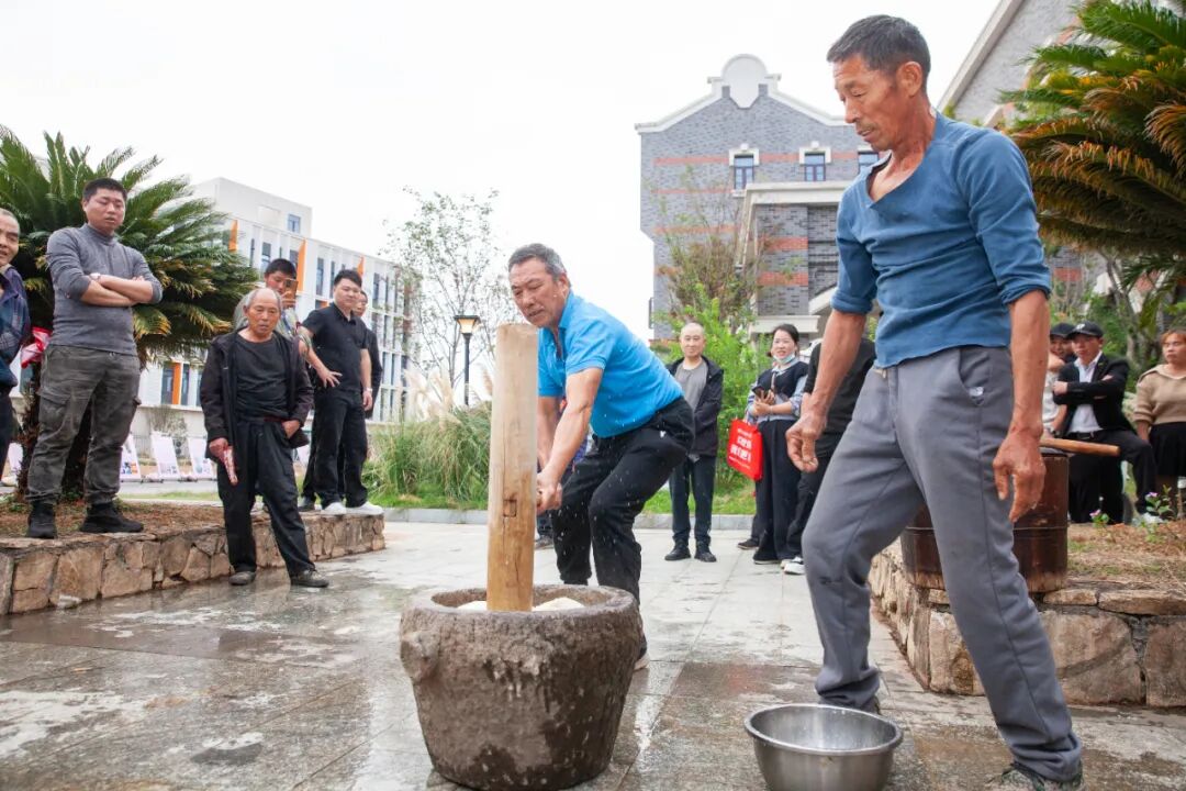 当天下午,韬奋小镇便进入“文化时间”。环绕式文化展示区里,邹韬奋先生的生平事迹引人驻足,雕刻大师馆内传统技艺展演令人称奇;活动中心戏台上,移风易俗主题文艺节目轮番上演,台下“摇扶船”“车仂灯”等非遗表演互动热烈,打麻糍、蒸水麯果仂的体验活动,让现场充满烟火气与文化味。