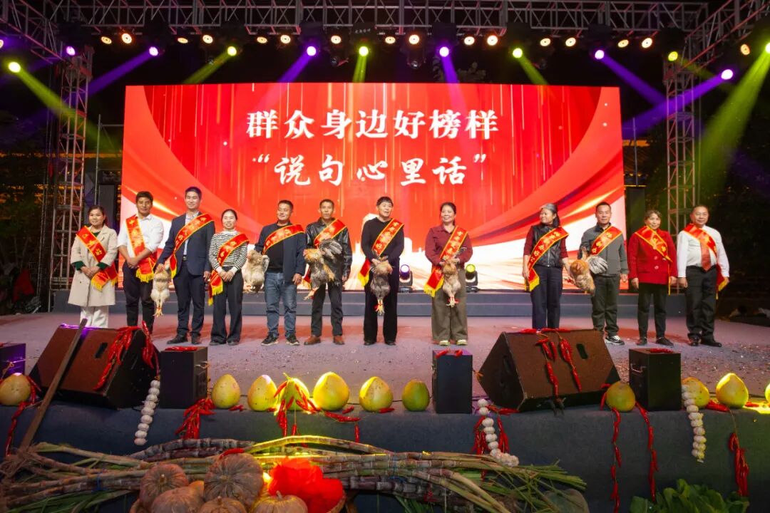 演出间隙举行的表彰环节,为评出的“村模范”“好家庭”“好村民”“好公婆”“好媳妇”,发放“村味”奖品,寓意日子红火、餐餐有余;受表彰代表以“说句心里话”的形式,积极传递崇德向善新风尚。此外,演出中穿插的精神文明创建知识问答,吸引大家踊跃参与,有效提升了群众对文明创建的知晓率、参与率和满意度。