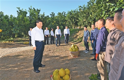 11月7日至8日,中共中央总书记、国家主席、中央军委主席习近平在广东考察。这是7日下午,习近平在梅州市梅县区雁洋镇南福金柚种植基地考察时,同果农和农技人员亲切交流。新华社记者 谢环驰 摄 ■ 广东是改革开放的排头兵、先行地、实验区,要深入学习宣传贯彻党的二十届四中全会精神,科学谋划未来5年的目标、任务和举措,以全面深化改革开放推动高质量发展,久久为功推动粤港澳大湾区建设,纵深推进全面从严治党,不断取得现代化建设新成效 ■ 我们今天取得的伟大成就,都是建立在毛泽东等老一辈革命家打下的江山、攒下的家底之上的。要结合党史宣传教育,讲好老一辈无产阶级革命家的故事,教育引导广大干部群众特别是青少年传承红色基因、赓续红色血脉,永远听党话、跟党走 ■ 发展乡村特色产业是推进乡村全面振兴的基础,要加强科技应用,推动农文旅融合,不断延伸产业链、增加附加值,带动更多农民群众增收致富 ■ 学习宣传贯彻党的二十届四中全会精神,是当前和今后一个时期全党全国的一项重大政治任务。要通过多层次多渠道宣讲培训,引导广大干部群众切实把思想和行动统一到党中央决策部署上来,进一步增进共识、增强信心、增添干劲。要准确把握党中央精神,针对干部群众关注的问题释疑解惑。广东作为经济大省和发达地区,在编制“十五五”规划时要有高站位、大格局,体现走在前、作示范、挑大梁的责任担当 ■ 广东增创新优势、实现新突破,必须大力弘扬改革开放精神、特区精神,以全面深化改革开放推动高质量发展 ■ 建设粤港澳大湾区,对广东来说既是重大责任,也是难得的发展机遇。要锚定建设富有活力和国际竞争力的一流湾区和世界级城市群的目标,同心协力、稳扎稳打,努力实现重点突破、全面推进 ■ 做好广东工作,必须加强党的领导、推进全面从严治党 ■ 现在到年底还有一个多月时间,要精准落实党中央决策部署,着力稳就业、稳企业、稳市场、稳预期,全面落实各项惠民政策,做好安全生产和维护稳定工作,努力完成全年目标任务 中共中央总书记、国家主席、中央军委主席习近平近日在广东考察时强调,广东是改革开放的排头兵、先行地、实验区,要深入学习宣传贯彻党的二十届四中全会精神,科学谋划未来5年的目标、任务和举措,以全面深化改革开放推动高质量发展,久久为功推动粤港澳大湾区建设,纵深推进全面从严治党,不断取得现代化建设新成效。 11月7日至8日,习近平在中共中央政治局委员、广东省委书记黄坤明和省长孟凡利陪同下,先后到梅州、广州考察调研。 7日下午,习近平来到位于梅州市梅县区雁洋镇的叶剑英纪念园。在叶剑英纪念馆,习近平向叶剑英铜像敬献花篮,参观叶剑英生平事迹陈列。随后,又参观叶剑英故居。习近平强调,我们今天取得的伟大成就,都是建立在毛泽东等老一辈革命家打下的江山、攒下的家底之上的。要结合党史宣传教育,讲好老一辈无产阶级革命家的故事,教育引导广大干部群众特别是青少年传承红色基因、赓续红色血脉,永远听党话、跟党走。 金柚是梅州的特色农产品。正值收获季节,柚子园硕果累累。习近平来到雁洋镇南福金柚种植基地,在展示厅听取广东加大对革命老区支持力度、推进乡村全面振兴等情况汇报,察看柚子及其加工产品、文创产品。他走进果林,同果农和农技人员亲切交流。得知今年金柚喜获丰收、销路畅通,习近平十分高兴。他指出,发展乡村特色产业是推进乡村全面振兴的基础,要加强科技应用,推动农文旅融合,不断延伸产业链、增加附加值,带动更多农民群众增收致富。 离开时,习近平同村民们亲切道别。他叮嘱,党和政府要继续加强对老区的政策扶持,老区广大干部群众要齐心协力、奋发图强。他祝愿乡亲们的日子过得像金柚一样又甜又美。 8日上午,习近平在广州察看广东科技创新和产业创新融合发展成果展示。随后,听取广东省委和省政府工作汇报。他对广东各方面取得的成绩给予肯定,对下一步工作提出要求。 习近平指出,学习宣传贯彻党的二十届四中全会精神,是当前和今后一个时期全党全国的一项重大政治任务。要通过多层次多渠道宣讲培训,引导广大干部群众切实把思想和行动统一到党中央决策部署上来,进一步增进共识、增强信心、增添干劲。要准确把握党中央精神,针对干部群众关注的问题释疑解惑。广东作为经济大省和发达地区,在编制“十五五”规划时要有高站位、大格局,体现走在前、作示范、挑大梁的责任担当。 习近平强调,广东增创新优势、实现新突破,必须大力弘扬改革开放精神、特区精神,以全面深化改革开放推动高质量发展。要坚持有效市场和有为政府相结合,促进各种所有制经济优势互补、共同发展。着眼发展新质生产力,强化科技创新和产业创新深度融合,建设具有国际竞争力的现代化产业体系。完善区域协调发展、城乡融合发展体制机制,完善基本公共服务制度体系,扎实推进共同富裕。稳步扩大制度型开放,深入实施自贸试验区提升战略,深度融入共建“一带一路”。继续抓好对内开放,既促进本地产业转型升级,又带动中西部地区产业发展。 习近平指出,建设粤港澳大湾区,对广东来说既是重大责任,也是难得的发展机遇。要锚定建设富有活力和国际竞争力的一流湾区和世界级城市群的目
