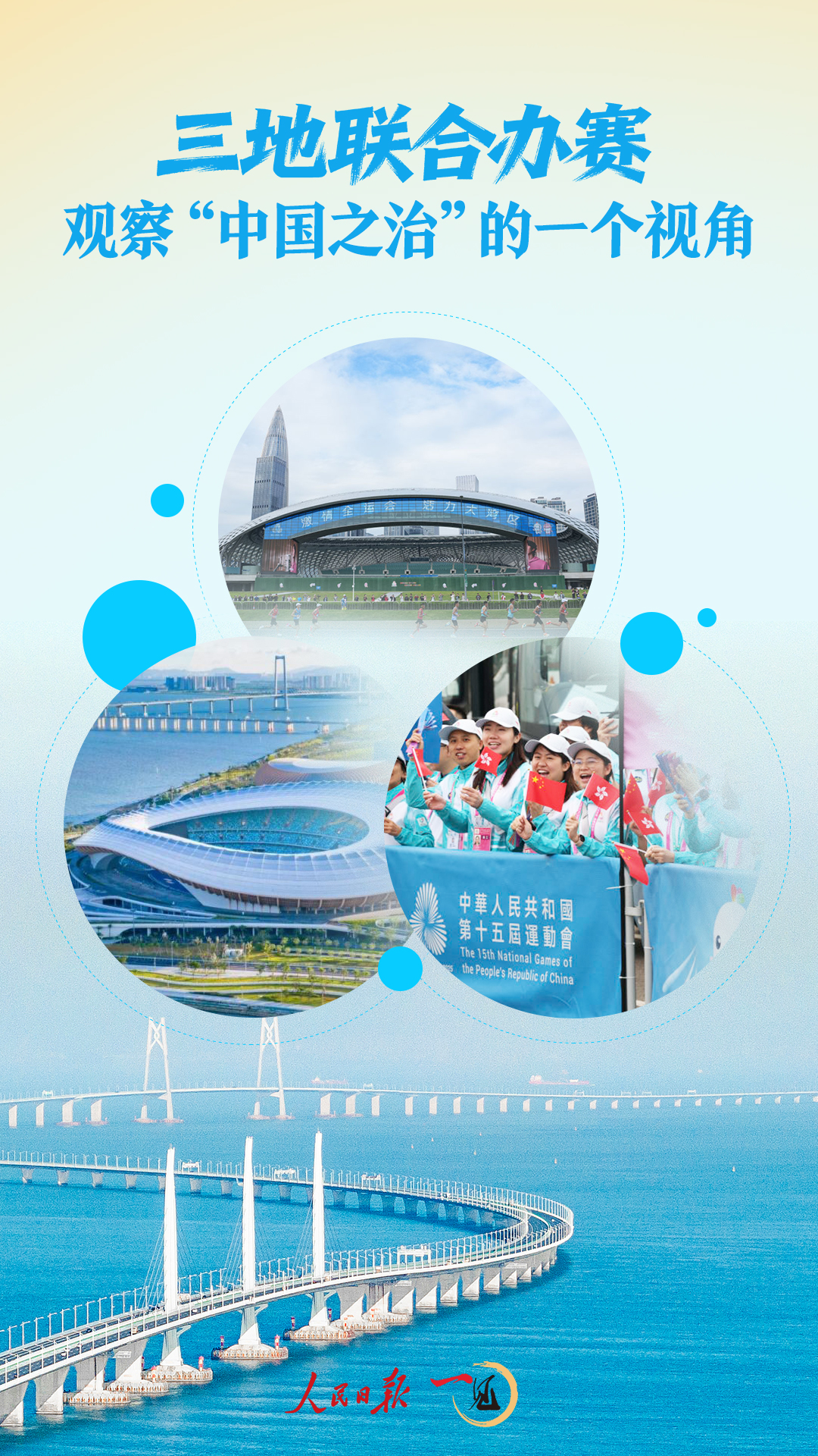 一届全运会里,有着最生动的诠释。行进在强国建设、民族复兴的伟大征程上,站在决胜“十四五”、谋划“十五五”的历史关口,粤港澳首次联合举办全运会,是历史赋予三地的特殊使命。 11月21日,第十五届全国运动会闭幕。回望,望向难忘的办赛点滴,望向粤港澳三地互联互通的探索实践,它何尝不是观察“中国之治”、观察中国式现代化何以一步步“乘势而上”的生动注脚? 势,在集中力量办大事的制度优势—— 三地办赛,沟通衔接有堵点吗? 畅通无阻! 以令人印象深刻的公路自行车赛为例。得益于“通关查验前置+闭环管理”创新模式,以港珠澳大桥为纽带的231.8公里赛道上,运动员能以每小时40公里的速度6次无间断通过三地口岸,全程不需刹车,“无感通关”。 港珠澳大桥,一桥飞架粤港澳。气贯长虹的“中国跨度”,得益于中央、地方各部门的协同发力:国家发展改革委牵头成立“港珠澳大桥专责小组”,协调各方推动解决口岸设置、投融资安排、通航与锚地等一揽子难题。 大桥跨江越海,彰显的是新时代“中国力量”! 多部门协力,集中力量办大事,“办”出互联互通的大湾区:已建成通车6条跨江跨海通道,天堑变通途;建成超过3000公里的大湾区轨道交通,干线铁路、城际铁路、市域(郊)铁路和城市轨道交通“四网融合”。 看向历史深处,一个又一个五年,一份份规划落地,“办”出南水北调、西气东输、东数西算等一个个长周期、大跨度、全国性重大工程项目,“办”出中国式现代化万千气象。 看向当下,精彩盛大的十五运会,不正是集中力量办出来的?破解跨区域协作难题,十五运会组委会创新建立“1+4”联络机制,国家层面设立组委会港澳工作协调部,粤港澳层面建立联络会议、首席联络官、联络员、联合工作组等常态化机制,形成“分层对接、全域覆盖”沟通网络。 日前,习近平总书记在广东考察,对粤港澳大湾区建设提出要求:“同心协力、稳扎稳打,努力实现重点突破、全面推进。”“同心协力”,道出我们的制度自信、道路自信。 看向一部部规划。从制定、实施到落地,哪一环节不凝聚着“同心协力”的力量?有各部门的扎实调研,有全国人民的建言献策,有各族人民万众一心、实干笃行,将蓝图变实景。 制度优势,汇聚成发展胜势。“巩固提升京津冀、长三角、粤港澳大湾区高质量发展动力源作用”“加强港澳与内地经贸、科技、人文等合作”……一项项实打实的举措,写进“十五五”规划建议。 一锤接着一锤敲,粤港澳同心协力,全国上下勠力同心,中国式现代化前景广阔、大道如砥。 势,在融入国家发展大局的乘风起势—— “推进规则机制‘软联通’”。 习近平总书记的这句话,点出粤港澳大湾区建设的关键。 全运会,何以办出彩? 机制上创新,“联通”上用力。粤港澳三地在监管互认、信息互通等方面开展深度协作,便利化通关等创新规则机制,服务赛事,也助力三地人员常态化流动。十五运会期间,有6000多名内地人员赴港澳、3000多名港澳人员来内地参赛。 大湾区,何以大发展? 答案,见于一份“十四五”成绩单:“港车北上”“澳车北上”单牌车通行量已突破700万辆次;联合港澳发布“湾区标准”262项,超过8000名港澳专业人才在大湾区内地城市执业,“跨境理财通”业务规模突破1200亿元……“一个国家、两种制度、三个关税区、三种货币”,因规则机制“软联通”,粤港澳迈向互通互融、协同发展。 联通的背后是融入。习近平总书记先前在港澳视察,时常提及广东。前不久在广东考察,又惦念着港澳:“支持香港、澳门更好融入和服务国家发展大局”。 融入,“一国两制”在新时代新征程的生动书写,加速了湾区各类要素流动,带动世界级湾区的崛起:“十四五”时期,大湾区经济总量突破14万亿元,综合实力再上台阶。 实践见证“融入”的力量。正如此次十五运会开幕式主题歌《天海一心》,一经发布,便引发共鸣:“随你融入大海,相知和鸣……一起融入大海,碧波万顷……” 融入,又何止粤港澳? 习近平总书记强调,“广东作为经济大省和发达地区,在编制‘十五五’规划时要有高站位、大格局,体现走在前、作示范、挑大梁的责任担当。” “走在前、作示范、挑大梁”,三组关键词,蕴含对广东发展定位的深邃思考,体现“党中央看问题,都是从大处着眼”的视野格局。 大湾区、长三角、京津冀……都要“融入”,融入全国一盘棋,从全局谋划区域,以区域服务全局。 因为融入,一幅幅区域经济布局的工笔画,连缀成经济社会高质量发展的新图景。 势,在全面深化改革开放的浩荡大势—— 新时代,习近平总书记多次到广东考察,“改革开放”是强调的高频词。对大湾区发展,更是寄予厚望:“把粤港澳大湾区建设作为广东深化改革开放的大机遇、大文章抓紧做实”。 抓紧做实,全运会里有乾坤。 十五运会,不再是一座城市的单打独斗,而是一个世界级城市群的珠联璧合。展现在世界面前的,是一个更亮丽、更自信、更开放的大湾区。 “跟着赛事去旅行”,一张全运门票,牵引出一条旅游路线。以广州为例,当地推出50条特色线路,通过票根优惠等方式,把全运场馆和文旅资源串联起来。 开放的大湾区,不只体现在文旅。 摊开大湾区地图,科创资源密集阵列。广深港、广珠澳两条科技创新走廊,沿珠江两岸如“人”字铺展,一批国家重大科技基础设施
