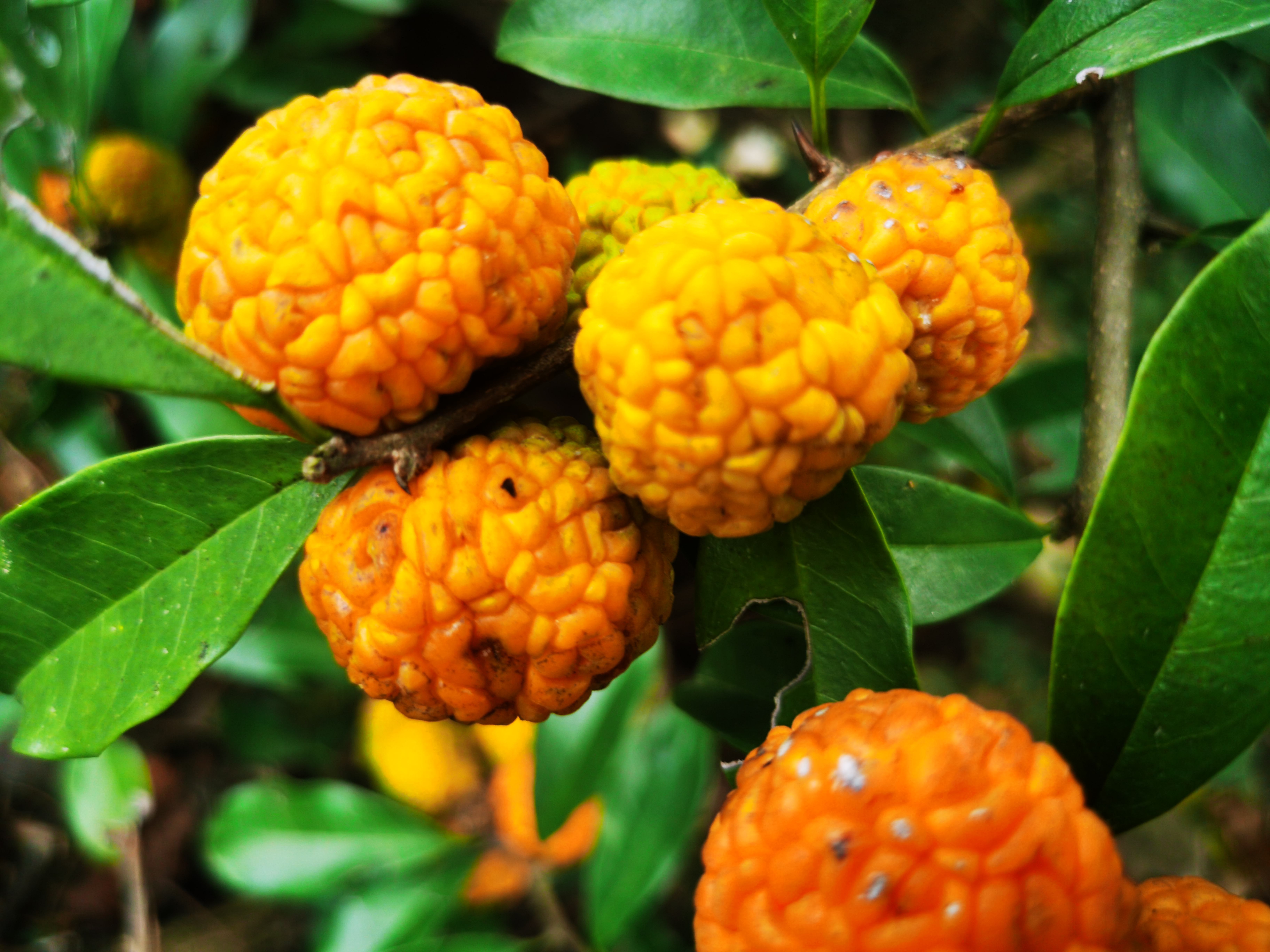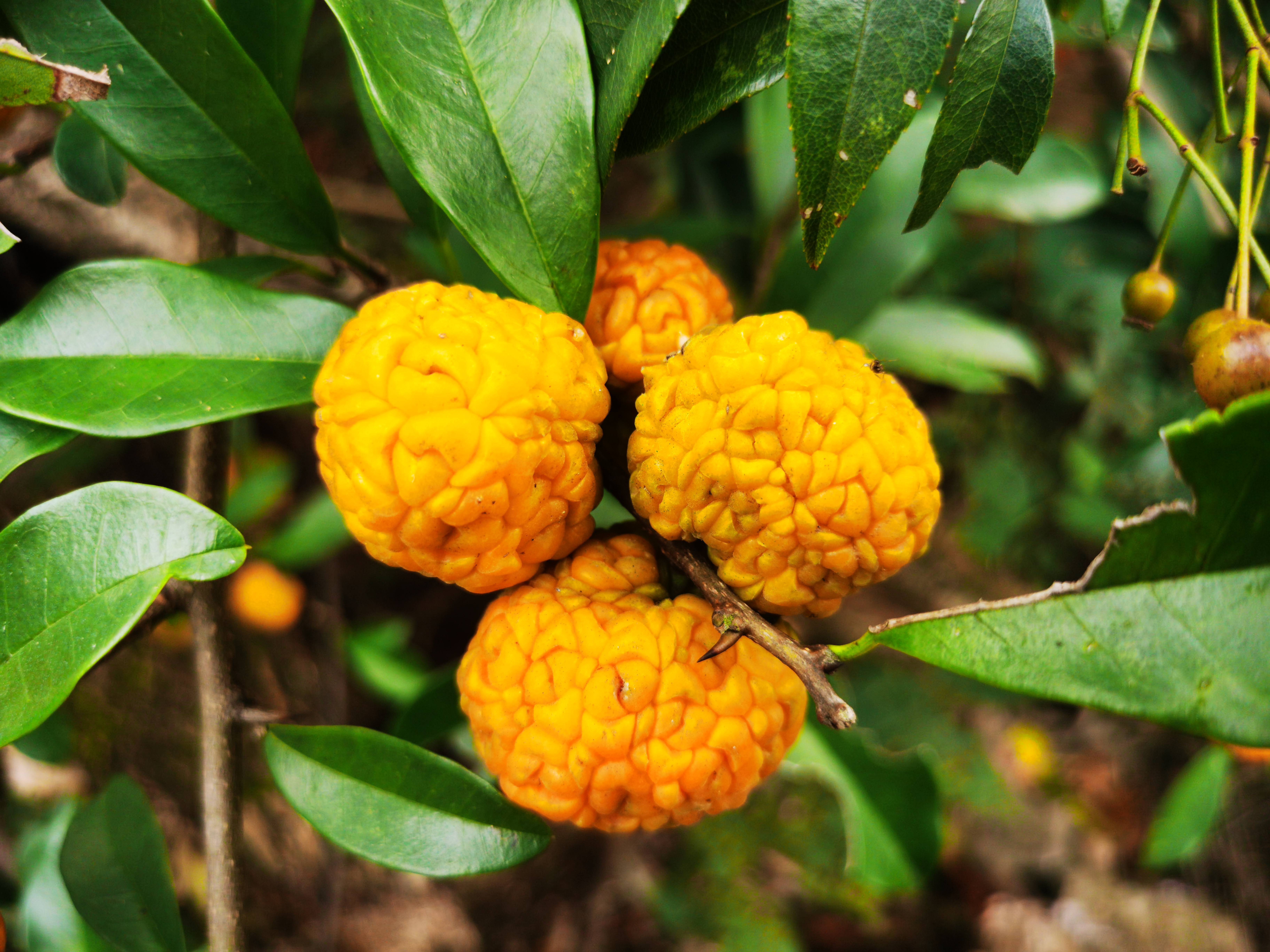 构棘果实表面布满龟裂纹,看起来有点像“聪明的大脑”,刚采下来时还会流出白色乳汁,其貌不扬,却是美味野果第一梯队。构棘果酸甜可口,果实流出的乳汁不但看起来像牛奶,吃起来也有一股淡淡的奶香,果实内部没有硬核,可以放心大口咬下去,爆汁的口感和独特的果香绝对让人回味无穷。