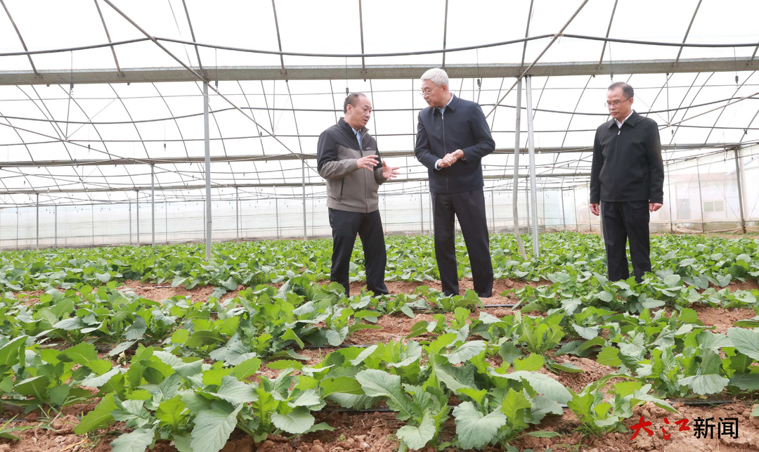 ▲摄影|江西日报全媒体首席记者海波 尹弘来到赣州市蔬菜质量标准中心沈佳农蔬菜基地,走进种植大棚察看蔬菜长势,了解产业发展情况,要求走适度规模经营路子,促进小农户和现代农业发展有机衔接。基地已建成田间预冷设施,大幅降低了农产品损耗,有效延长了保鲜期。尹弘察看冷库储存、细问冷藏运输成本,强调要聚焦农产品采后保鲜,因地制宜布局田间地头移动式、共享式预冷设施,补齐冷链物流“最先一公里”,最大限度降低损失、保障品质,真正实现农产品“卖得好、销得远”,助力农业提效益、农民增收入。