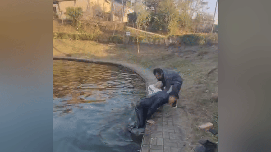 11月29日 付洪萍和许格非、陈金山、匡载彰 几位老师一起在池塘边散步 隔着十几米远看到有水花在翻动 走近才发现 竟是一个小男孩在水中挣扎