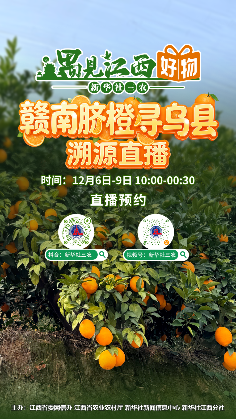 继“遇见江西好物”赣南脐橙专场取得热烈反响后,12月6日至9日,直播间将再次聚焦赣南脐橙的核心产区之一——寻乌,开启为期四天的寻乌脐橙专场直播。届时,观众将能品味到来自“脐橙黄金生长带”的香甜果实,感受一颗橙子背后的自然馈赠与产业匠心。