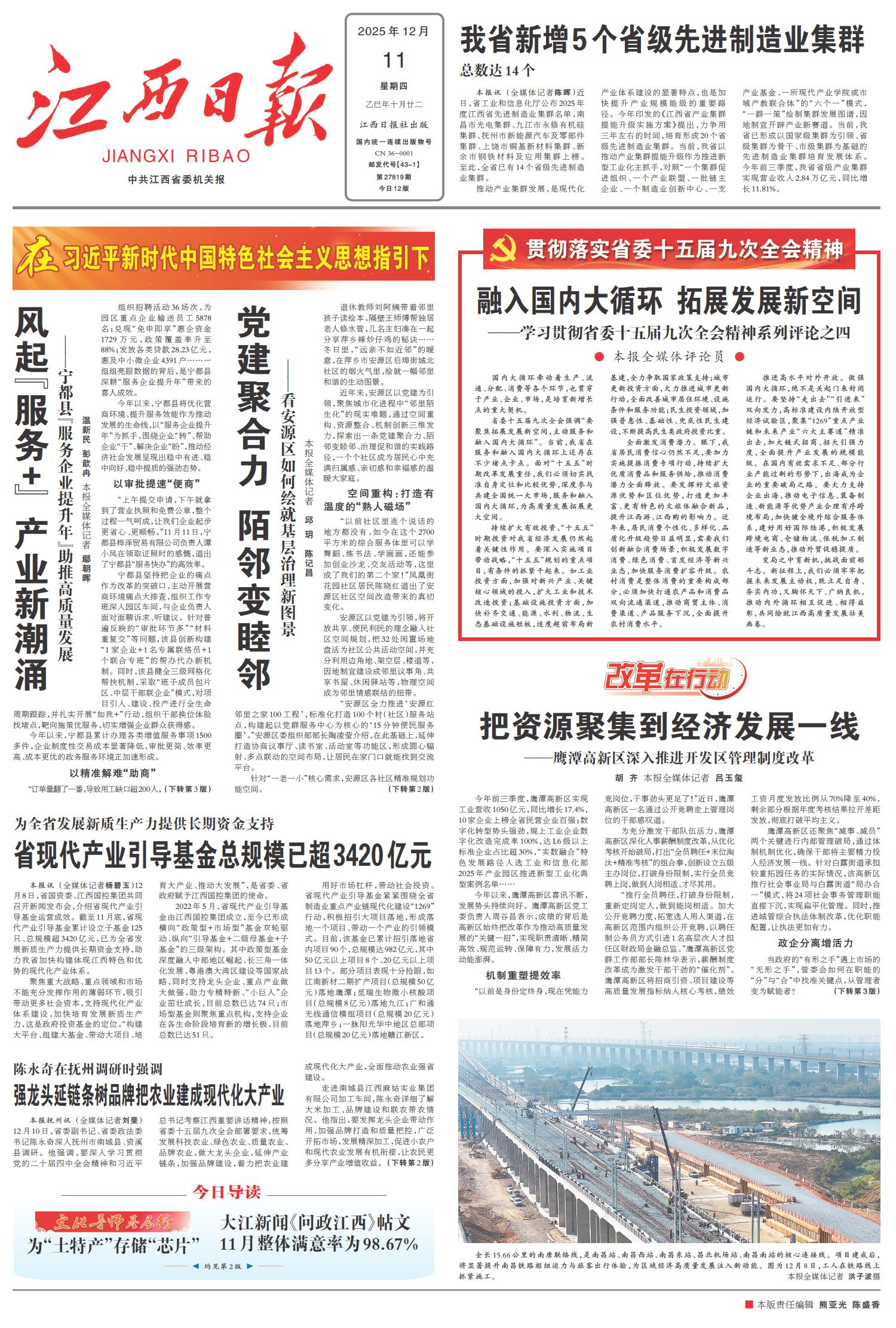 今年前三季度,鹰潭高新区实现工业营收1050亿元,同比增长17.4%,10家企业上榜全省民营企业百强;数字化转型势头强劲,规上工业企业数字化改造完成率100%,达L6级以上标准企业占比超30%,“实数融合”特色发展路径入选工业和信息化部2025年产业园区推进新型工业化典型案例名单…… 今年以来,鹰潭高新区喜讯不断,发展势头持续向好。鹰潭高新区党工委负责人周谷昌表示,成绩的背后是高新区始终把改革作为推动高质量发展的“关键一招”,实现职责清晰、精简高效、规范运转、保障有力,发展活力动能澎湃。 机制重塑提效率 “以前是身份定终身,现在凭能力竞岗位,干事劲头更足了!”近日,鹰潭高新区一名通过公开竞聘走上管理岗位的干部感叹道。 为充分激发干部队伍活力,鹰潭高新区深化人事薪酬制度改革,从优化考核开始破局,打出“全员聘任+末位淘汰+精准考核”的组合拳,创新设立五级主办岗位,打破身份限制,实行全员竞聘上岗,做到人岗相适、才尽其用。 “推行全员聘任,打破身份限制,重新定岗定人,做到能岗相适。加大公开竞聘力度,拓宽选人用人渠道,在高新区范围内组织公开竞聘,以聘任制公务员方式引进1名高层次人才担任区财政局金融总监。”鹰潭高新区党群工作部部长陈林华表示,薪酬制度改革成为激发干部干劲的“催化剂”。鹰潭高新区将招商引资、项目建设等高质量发展指标纳入核心考核,绩效工资月度发放比例从70%降至40%,剩余部分根据年度考核结果拉开差距发放,彻底打破平均主义。 鹰潭高新区还聚焦“减事、减员”两个关键进行内部管理破局,通过体制机制优化,确保干部将主要精力投入经济发展一线。针对白露街道承担较重拓园任务的实际情况,该高新区推行社会事业局与白露街道“局办合一”模式,将24项社会事务管理职能直接下沉,实现扁平化管理。同时,推进城管综合执法体制改革,优化职能配置,让执法更加有力。 政企分离增活力 当政府的“有形之手”遇上市场的“无形之手”,管委会如何在职能的“分”与“合”中找准关键点,从管理者变为赋能者? 鹰潭高新区的答案是:打造“管委会+公司”运行模式,加快政企分离、政资分开,进一步放权赋能,整合现有国有公司,打造鹰潭炬能投资集团有限公司、鹰潭高新区产业投资发展集团有限公司两大平台公司,并实行差异化发展,推动国有企业向现代化、市场化、专业化经营主体转变。该高新区还出台了国有企业“三重一大”管理办法,构建“管委会管资本、国资委管事务”的治理模式,让企业真正成为自主经营的主体。 “改革前,公司业务分散于基础设施代建、资产运营和投融资领域,长期面临发展定位模糊、权责不清、效率不高与资产负债率偏高等问题。”鹰潭炬能投资集团有限公司董事长李国萍坦言,在“管委会+公司”发展模式的推动下,集团以股权划转、盘活闲置资产、注入优质资源等方式,实现资产新增53亿元,资产负债率同比下降5%以上。 2024年新组建的产投集团,是推动“城投”向“产投”转型的关键载体。在产业园区建设中,产投集团通过“投融建管营”一体化模式,盘活闲置用地1000余亩、厂房20余万平方米,建成电子元器件、新能源扁线等专业园区,成功吸引30多家企业入驻。 “今年以来,我们的各项业务发展势头迅猛,供应链服务企业14家,业务收入26亿元,同比增长17%;融资担保业务服务企业70家,担保余额4.11亿元,同比增长19%。”鹰潭高新区产业投资发展集团有限公司总经理江帆介绍,该集团还成立了市场化招商公司开展基金招商,参与组建总规模50亿元的鹰潭现代产业引导股权基金,与光大控股合作设立10亿元的鹰潭高新区光熠产业投资基金,以“基金投资+政策配套”模式,先后引进江铜嘉磁动力等6个产业基金项目。 产业迭代强动能 12月5日,记者在鹰潭市钲旺科技有限公司的智能化拉丝生产车间看到,自动导引车正依循数据指令,在生产线间悄然穿梭、精准往来,完成物料流转。“目前8条智能生产线,已通过‘5G+MES+ERP’体系实现全流程数字化管控。”公司负责人王凯介绍,得益于当地政府的金融支持,企业无须提供实物资产抵押,依托自身信用资质即可获得数字化改造所需的信贷资金,有效缓解了企业的资金投入压力。该企业通过“数智贷”获得了1200万元贷款,完成数字化转型后,生产效率整体提升60%。 铜产业生产资金需求量大,推动企业进行数字化转型与产品向高端化发展,须解决企业资金难题。为此,鹰潭高新区聚焦金融改革,助力企业发展转型。“园区通过联合金融机构,创新推出‘数智贷’‘科贷通’‘工创贷’等专项金融产品,构建起‘财政资金增信引导+货币政策工具支持+银行信贷资金跟进’的服务模式。”鹰潭高新区金融办负责人朱正介绍,今年以来已为59家企业累计发放贷款27亿元,有力地支持了企业进行数字化改造与科技研发。 改革的乘数效应,在鹰潭高新区的产业发展中持续释放。以打造国家级铜基新材料产业集群为契机,聚焦主导产业,推动集群发展,鹰潭高新区集聚规上铜企79家,其中营收过百亿元的企业4家、国家级专精特新“小巨人”铜企业6家,精深加工比重提升至52.8%,形成线缆线束、电子信息涉铜、新能源涉铜3条核心产业链。截至目前,鹰潭高新区198家规上工业企业均已完成数字化改造,其中62家达到L6级标准,17家企业获批“小灯