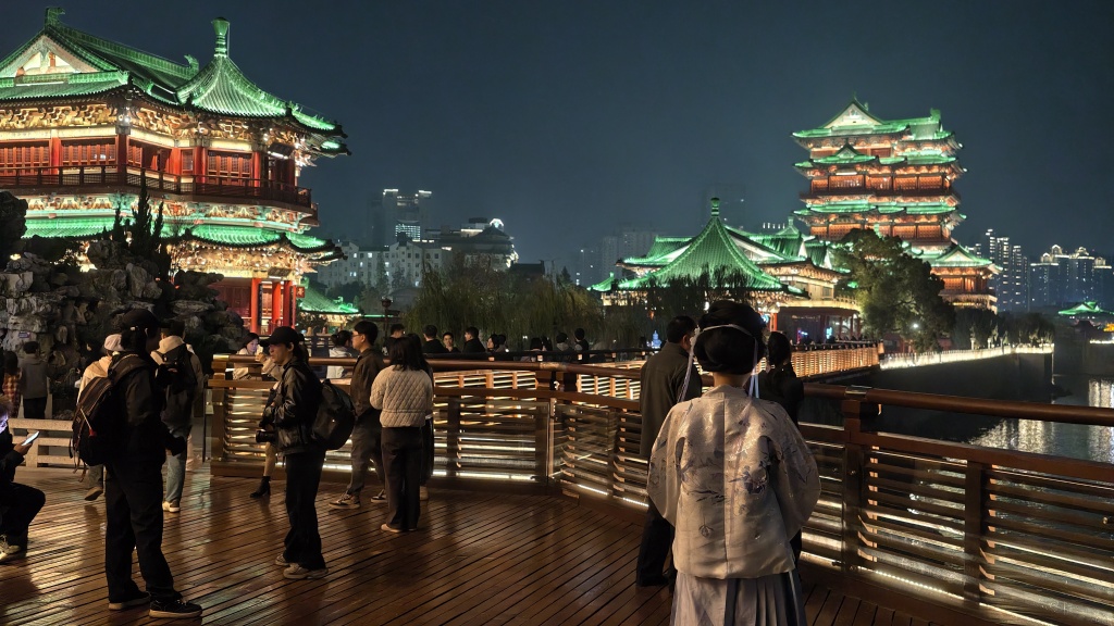12月10日晚,身着汉服的游客在滕王阁北扩景区打卡。 澎湃新闻记者 王洛伊 图 毗邻滕王阁景区的大士院街区,同样贯行了“有所不为”的理念。这里并未刻意打造仿古商业街,而是保留原有的街巷肌理与市井生活,让鸡蛋油条、冰糖糕、白糖糕等本土小吃店铺自然生长。正是这份未加修饰的南昌烟火气,反而让街区成为一处具有高黏性的人气街区。 “毫不夸张地说,上世纪90年代的大士院街,有点像香港电影里的《九龙城寨》。”南昌东湖区滕王阁街道办事处副主任杨邸著回忆说,街区的“走红”离不开“天时地利人和”。2023年,随着“特种兵旅游”的兴起,让这个毗邻滕王阁的街区被游客“挖掘”发现。“这里的南昌拌粉三块五,瓦罐汤四块”,一个个与之类似的分享在社交平台上不断传播,让大士院街区意外走红。 走红之后,大士院街先后经历了三轮更新改造,陆续增设6座牌楼标识,沿街墙面绘制了还原二十世纪八九十年代风貌的彩绘,设置多处文创打卡墙与街区美食导览图等,在提升互动体验的同时,延续着街区原有的街巷肌理与生活气息。 据杨邸著讲述,该街区对业态进行的“干预”,主要是主动避开全国连锁商业品牌,有意引入江西小炒、非遗店铺及本土茶饮品牌等。他说,无论大士院街区如何更新演变,但“烟火气的底色,绝对不能被改变”。 真实,往往最打动人心。这份“有所不为”,也恰恰留住了南昌城的“本真味道”,让大士院街成为“本地人常来、外地人必来”的网红打卡地。
