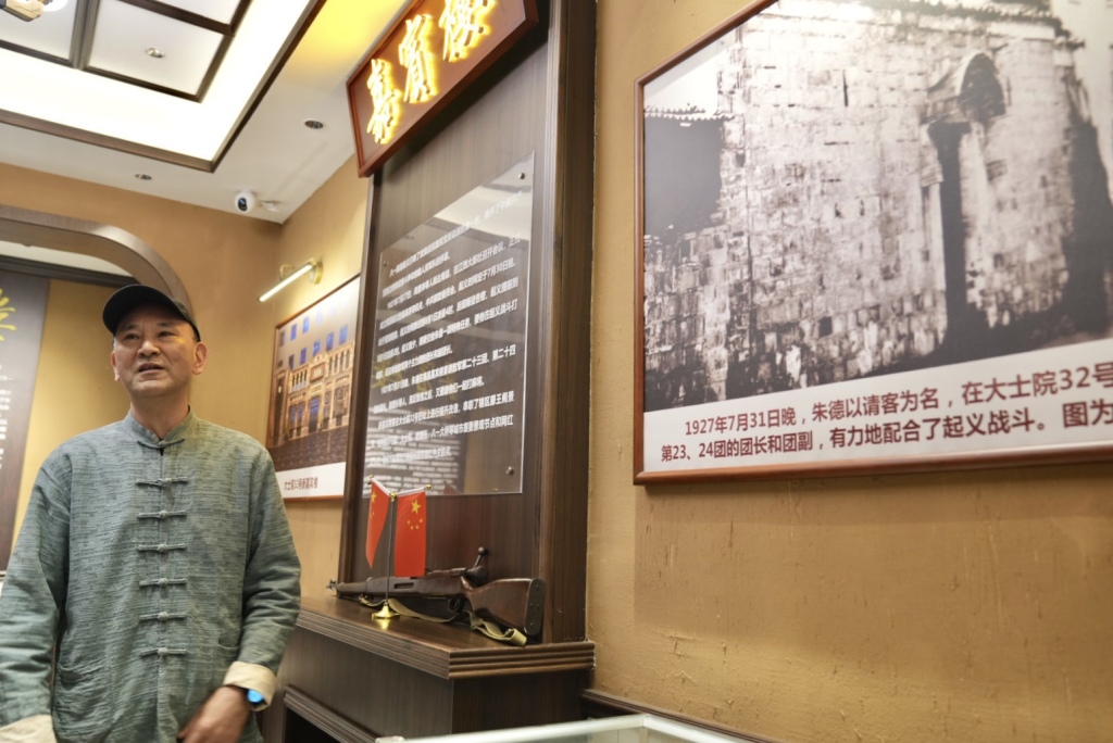南昌“八一广场”升国旗仪式资料图。 南昌日报记者 马悦 摄 当人们站在旗杆下,仰望五星红旗徐徐升起,“英雄城”的形象与精神底色,也正以潜移默化的方式,映入眼中、走进心里。 而在市井烟火深处,“英雄城”的故事同样以一份“轻盈”被继续讲述着。“江西是一片红色的土地,作为餐饮人,我想做一件对社会、对自己都有意义的事。”这正是涂代富在大士院街区创立“嘉宾楼”餐馆的初衷。 他的灵感来源于历史上真实发生的一场特殊晚宴:1927年7月31日晚,八一起义前夕,朱德选在大士院32号嘉宾楼设计摆酒宴,和国民党军官组“麻将局”,拖住南昌城守军两个主力团的团长以及副团长,为起义的胜利赢得了时机。