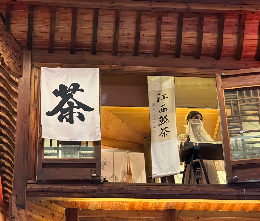 万寿宫历史文化街区的“江西鲲茶”二楼,彭艺柔正在弹奏古筝。受访者 供图 今年在读大四的彭艺柔,在万寿宫当乐手近3年,亲历了南昌的“走红”。她对澎湃新闻说,自己某种程度上也成为南昌文旅的参与者,毕业后,她希望继续留在这座城市生活和工作。 对于一个久别故土的人而言,变化的感知往往更为直接。一周前,因工作机会,自媒体博主罗达达回到了阔别30年的家乡南昌。抵达当晚,他直奔东湖区一家老店,喝上了心心念念的地道瓦罐汤,“一口下去,童年的记忆、家乡的温情,全都涌了上来。” 短短几日,他走过赣江两岸,目睹了高楼林立与江水相依的新貌;穿行于老街深巷,感受了市井烟火的活力;也专程前往八一起义纪念馆,在肃穆的展厅里,读懂了“英雄城”三字承载的重量。 他说,这一程,像是又重读了一遍,他的城。