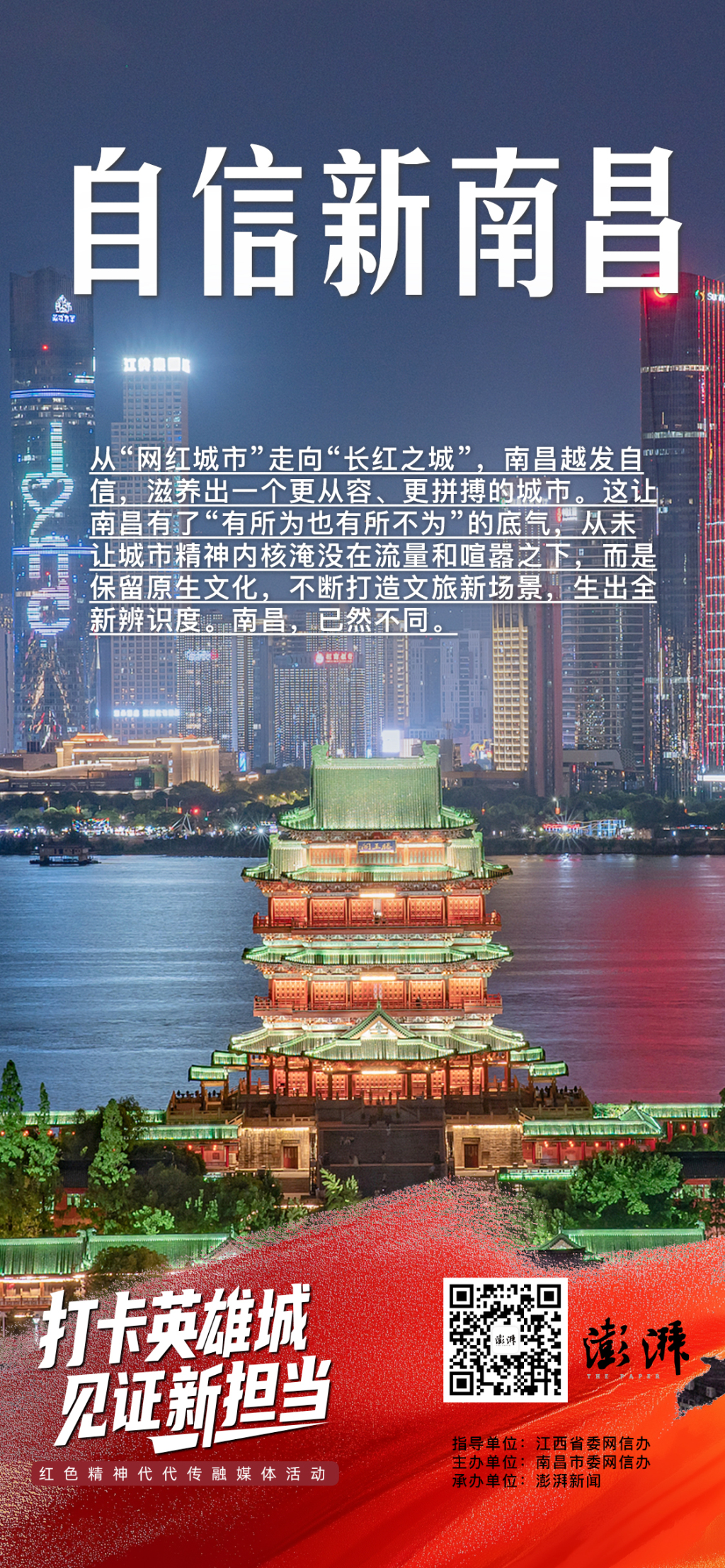 “自信,是英雄城南昌的应有气概。” 如今,南昌用实际回应了这一源自于4年前的呼吁。 2021年12月,《南昌日报》在题为《南昌人要自信》的社论文章中提出这一呼吁。不到两年,南昌凭借英雄城的独特魅力、滕王阁和海昏侯为代表的深厚历史文化、万寿宫的烟火和潮流等元素,以及创办赣江烟花晚会等旅游新场景的自主努力,乘着“特种兵式旅游”的东风,从众多城市中成功突围,在2023年一举跃入“网红城市”行列。 又是两年过去,如今的南昌,文旅吸引力依然延续,从“网红城市”走向“长红之城”,聚集而来的人气,让这座城市越发自信,滋养出一个更从容、更拼搏的新南昌。