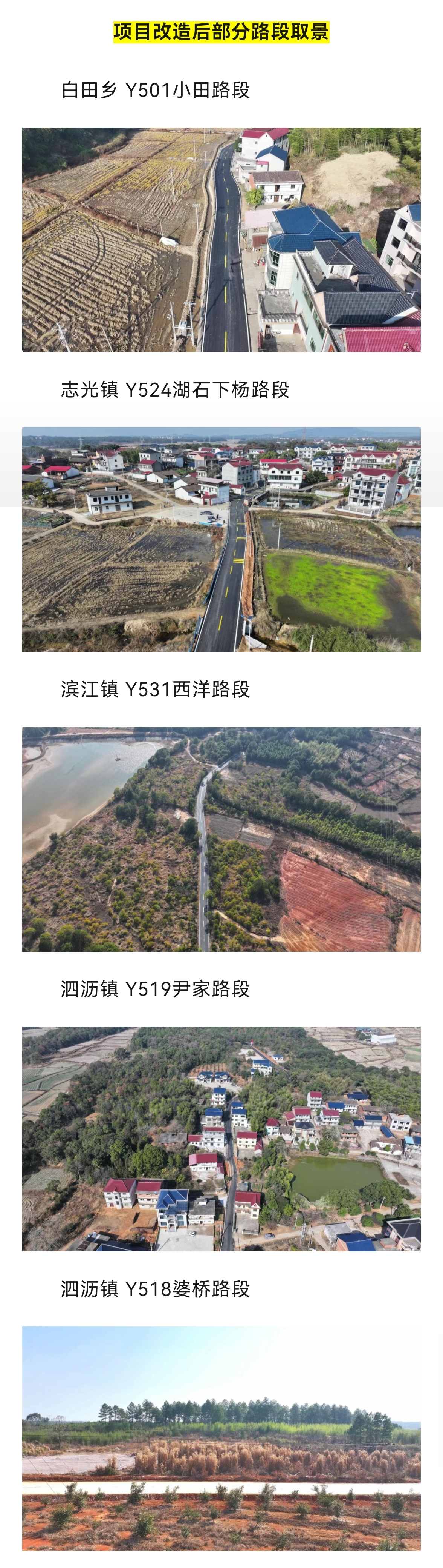 近日,覆盖贵溪市白田、志光、滨江、泗沥4处乡镇的5条农村公路迎来工程改造后的通车使用。此次道路改造工程聚焦农村出行,工程路线总长23.398km。工程内容涵盖路基工程、路面工程、涵洞、及埋管线等多个关键环节,通过系统性的提质升级后,道路通行质量、承载能力、安全性能等方面得到显著提升,进一步优化了贵溪市乡村路网布局,为乡村振兴夯实基础。 据了解,此前5条老旧农村路为乡村路网里的“老大难”,“破、窄、堵”三大问题尤为突出,道路建成早,路基单薄,常年经受农用车和日常通行车辆的碾压,路面裂缝、坑洼随处可见。路面窄小会车难,也成为村民日常出行的烦心事,逢年过节更是“出行难、通行堵”。 原本普遍宽为4.5m的农村路,经工程改造后,路基拓宽至6.5m,路面宽度为6m,千疮百孔的水泥路面改造为崭新的沥青混凝土面层,极大改善了村容村貌,同时有效提升了道路通行效率,为农副产品运输、当地乡村特色产业发展创造了更加有利的条件,成为打通“村——镇、村——村”链接纽带的有力举措,显著提升了乡村路网服务能力,为乡村振兴提供了“快车道”。