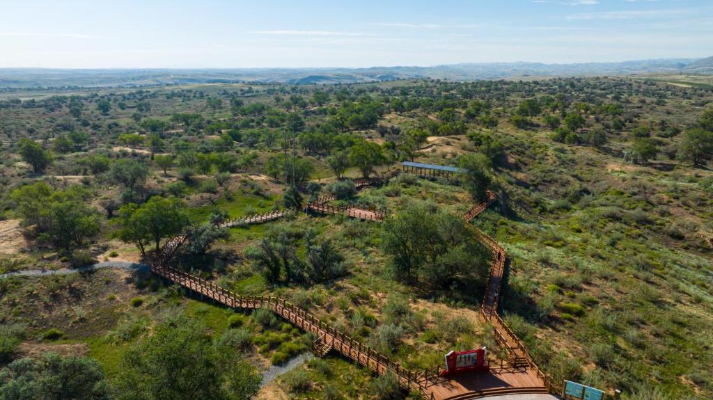 这是2025年7月22日拍摄的武威市古浪县八步沙林场。(武威市融媒体中心供图) 郭万刚把自己的侄子也喊了回来。“年轻人思路活,懂新技术,引入了无人机、打坑机、抱草机,效率提高好几倍!” 他们还在短视频平台注册“八步沙林场”账号,展示治沙场景和林场变化,吸引了网友和社会公益组织的关注。涓涓细流,新绿丛生,更多年轻人加入林场,全国各地的网友还开始了“云种树”,让古浪治沙进入“信息时代”。 风沙渐退,林场顺势发展起林下经济。他们和周边农户成立合作社,养溜达鸡,在梭梭树下嫁接肉苁蓉,治沙又致富。“乡亲们从沙漠中受益,造林护绿的积极性更高了。”郭万刚说。 虽然年事已高,但无论寒暑,郭万刚每天依旧会在天未亮时来到八步沙,检查防火、看护树苗、修剪枝丫…… “今年春天,还有一批新苗就要种下了。”他望着无垠的林海说。 江边的“珍稀宝贝” 湖北省三峡坝区,高峡平湖,烟波浩渺。 宜昌市秭归县童庄河江心小岛上,三峡集团长江生物多样性研究中心副主任黄桂云俯身,仔细察看一株株丰都车前。这种曾因库区蓄水淹没几近灭绝的珍稀植物,在黄桂云团队抢救性保护下,从最初引入的10株,繁育扩大到近万株,并于2024年3月成功回归野外。 看到丰都车前长势喜人,黄桂云的心里又踏实了几分。