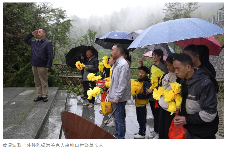 黄渭波烈士身份被确定后,一系列重大发现接连而来—— 2023年9月,第二位烈士身份确认。何连钰,江西遂川人。何氏家族共有12人以身殉国,其中就包括他和父亲。父子俩一起参加赤卫队,先后牺牲。 2024年8月,第三位烈士得以确认。肖栋才,湖南平江人,17岁跟着彭德怀平江起义部队上井冈,牺牲时任红五军某部班长。后人曾赴井冈山多次寻亲未果,只好取一抔土带回老家,建起一座衣冠冢。 2026年1月,朱建盛烈士身份被确认。 寻亲,让神山村“红色印记”放射出不灭的辉光!
