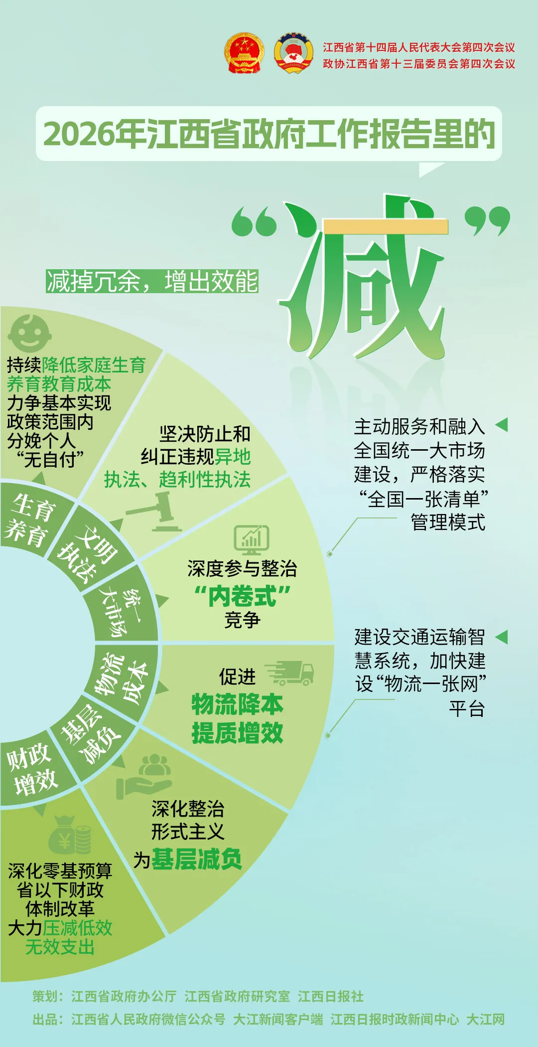每年的政府工作报告,都积极回应着百姓的热切期盼,传递着改革的清晰动向。而报告里诸多“加减乘除”式的政策举措,都是在为民生福祉保驾护航。加减之间是民生冷暖,乘除之中见创新智慧。一组海报,带大家看看今年江西政府工作中,有哪些令人耳目一新的“算术题”。