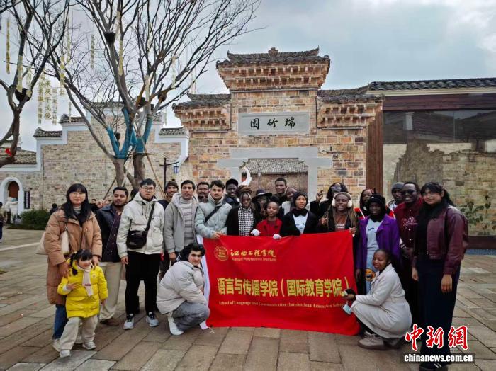 2月7日,马年春节将至,来自巴基斯坦、尼泊尔、南苏丹等国家的留学生来到江西省新余市分宜县介桥村,体验浓浓年味。王剑 摄 “介桥古村是江西省历史文化名村,始建于北宋元祐年间,村内明清建筑众多,拥有十宗祠、九府第、二十九私厅。古建筑结构和雕刻十分精美,工艺考究,多属江南天井式建筑。”介桥村驻村第一书记李帅表示,希望留学生们能在古村沉浸式感受中国传统文化。 当日,古村还为“洋学生”们准备了当地著名的“分宜八大碗”——醋鸡、活水鱼、洋江萝卜、麻辣鸭等美食。暖阳下,留学生们与当地村民共品长街宴。 “我最喜欢的中国美食其实是月饼,尤其是蛋黄馅的。”来自孟加拉国的留学生拉米莎在长街宴上大快朵颐,“我希望在中国品尝各种美食,这是一段美好的体验。”
