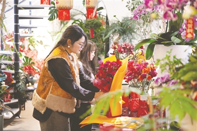 花店老板正在包扎创意混搭花束。黄苏明 摄 春节将至年味浓。年宵花作为承载美好祝福的“新春标配”,正迎来销售旺季,花卉市场一片欣欣向荣。 日前,笔者走进月湖区欣新路一家花店,扑面而来的花香沁人心脾。店主刘玲玲正将整理包好的花束整齐摆放好,等待送出。 随着市民生活水平的不断提高,年宵花消费也呈现出多元化趋势。传统的富贵竹因“富贵吉祥”的寓意,是中老年群体的首选;而色彩鲜艳的创意混搭花束,则成为年轻人的心头好。线上预订、同城配送等便捷服务,更让鲜花消费逐渐增多。 一束束鲜花,承载着市民对新春的期盼,也折射出鹰潭消费市场的活力与民生幸福。 |