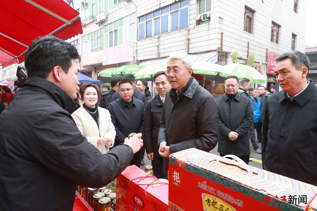 ▲摄影|江西日报全媒体首席记者 海波 春节临近,南昌县三江镇集贸市场格外热闹,人们忙着采买年货和各类新鲜食材。各种摊位上摆满了年货,炒粉、牛杂汤等美味热气腾腾。尹弘深入集贸市场,察看炒货、豆制品、肉类等多个摊位,与正在忙碌的商户和顾客交流,向大家致以新春祝福。尹弘说,春节是群众购买需求量最大、最集中的时段。要强化供需对接,丰富市场供给,确保节日期间各种商品供应跟得上、价格稳、品质优,让群众买得称心、吃得放心。尹弘详细了解市场运营管理情况,叮嘱当地要优化运营管理服务,做好交通秩序疏导,加强食品安全检测,打造有序、整洁、舒心的市场环境,让群众欢欢喜喜过大年。 来到三江镇综治中心,尹弘走进服务大厅、人民调解室和“丈母娘团”工作室,看望慰问坚守一线的基层综治工作人员,希望大家强化“时时放心不下”的责任感,深入群众摸排辖区情况,抓好抓实困难群众纾困帮扶和矛盾纠纷排查化解工作。尹弘通过大屏了解当地综治情况,要求始终扛牢扛稳安全稳定责任,针对春节前后情感纠纷、家庭矛盾多发特点,延伸工作触角,加强矛盾调解,做到早发现、早介入、早化解,全力维护社会和谐稳定。