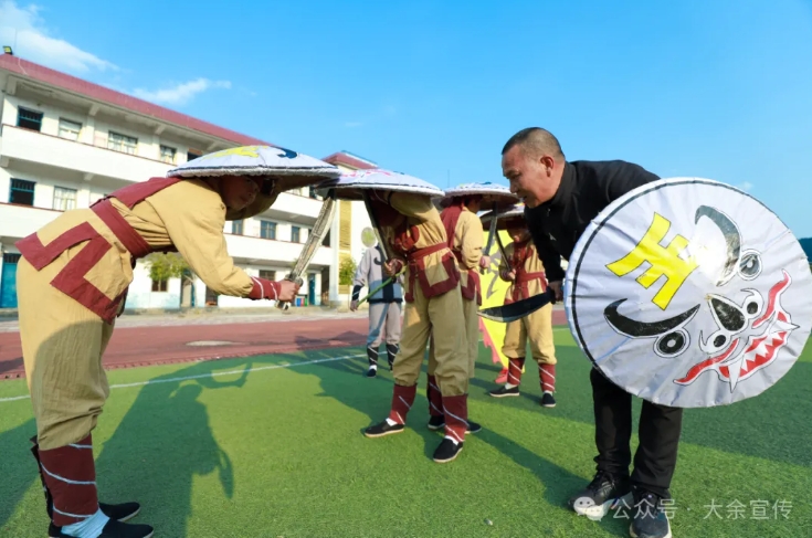 一面盾牌,能抵挡什么? 四百年前,它在抗倭战场上抵挡刀光剑影,守护家园城池。如今,在大余县吉村镇吉村中学,这面盾牌正帮助一群少年,抵挡成长的迷茫、精力的涣散,以及与文化根脉的疏离。 校园也要文化载体