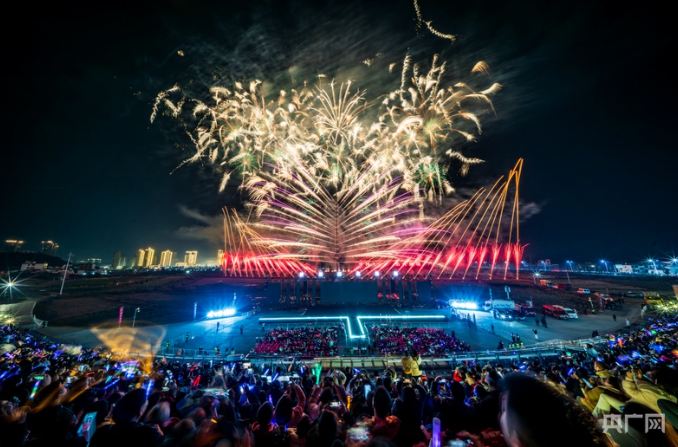 焰火在夜空中绚烂绽放(央广网发 刘秋雨 摄) 晚会紧扣“花开上栗·福启新春”主线,将歌舞、民乐演奏与焰火表演穿插融合。《迎财纳福》《百球闹春》《千年礼韵》《万家烟火》四大焰火篇章次第展开,与文艺节目共同勾勒出上栗花炮文化与中华传统年文化交相辉映的画卷。序幕焰火呼应迎财神民俗,也是对花炮祖师的追忆;第二篇章以礼花弹铺陈开年气象,延续着上栗人世代相传的手艺;《千年礼韵》通过多层次高空焰火,向花炮匠人的坚守致敬;终章《万家烟火》则以满天星雨传递团圆之意,让千年非遗在新时代绽放新的光彩。 “第一次在家门口看到这么高规格的焰火秀,特别震撼,年味一下子就拉满了。”从长沙返乡过年的李思帆女士感叹。专程从萍乡市区赶来的游客黄鑫则认为:“这不仅是烟花表演,更像在讲述上栗的星空故事,既有历史底蕴,又彰显产业自信。”